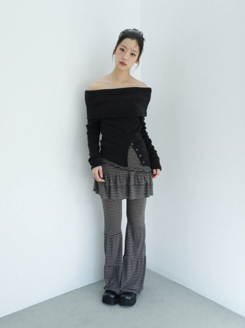 캉캉 스트라이프 스커트 팬츠(차콜)