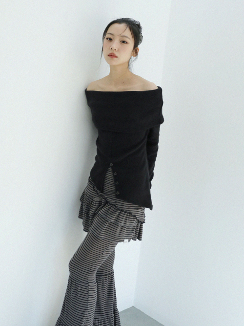 원단 특성상 약간의 비침이 있어 보일 수 있으나, 스커트 부분은 원단 이중 처리 되어 착용 시 불편함이 없습니다.