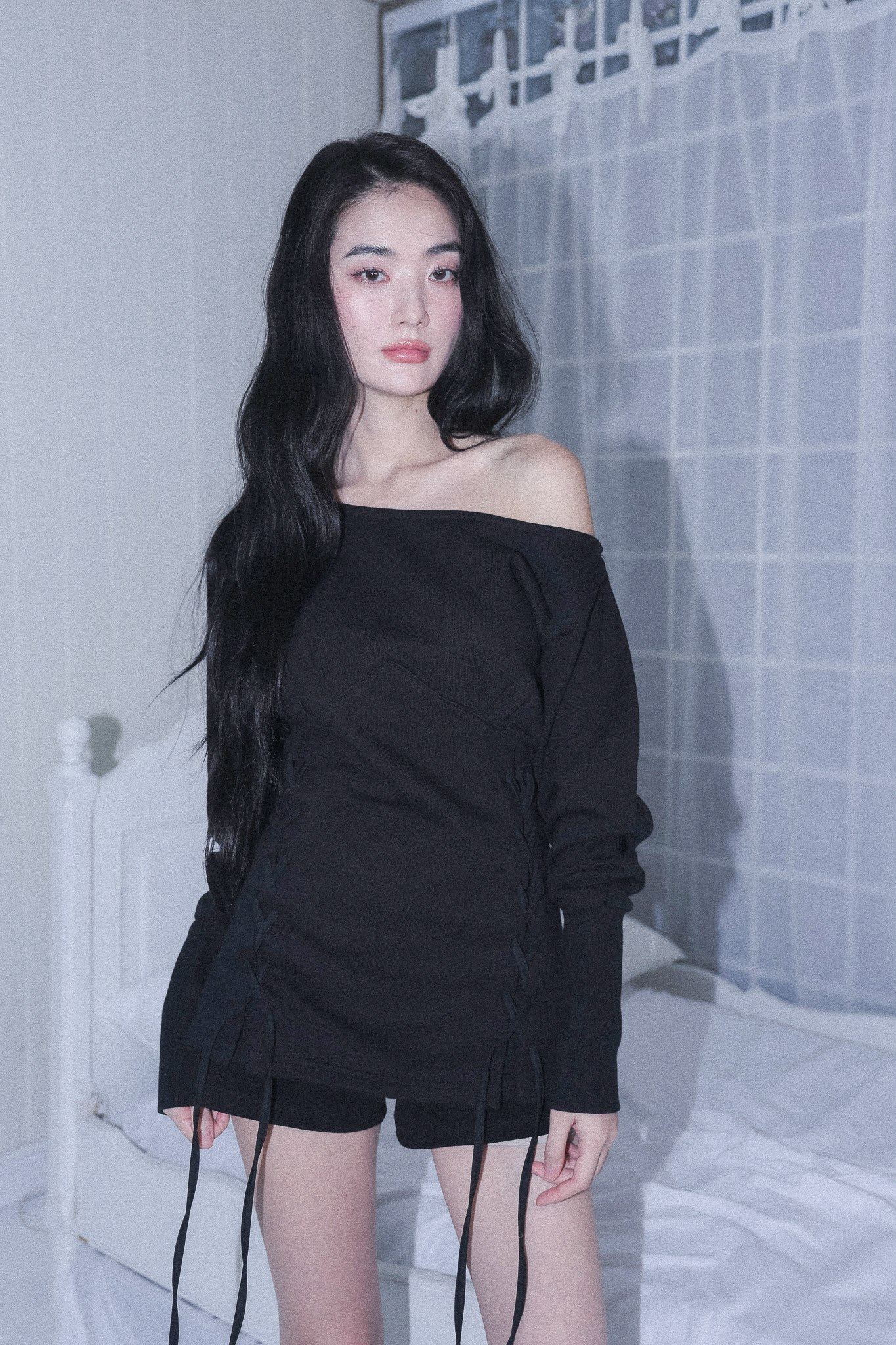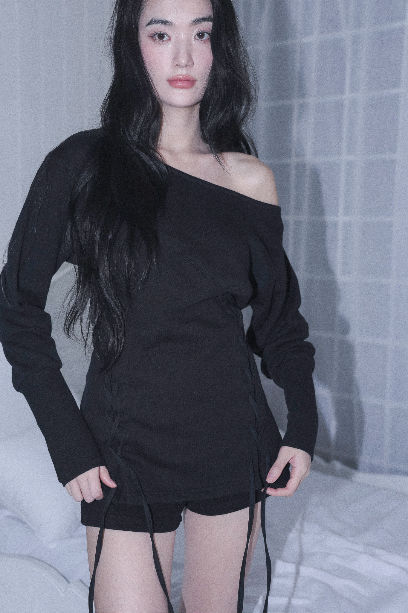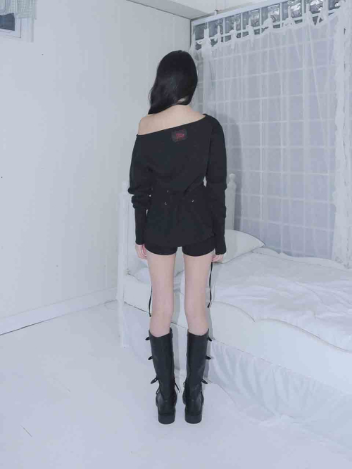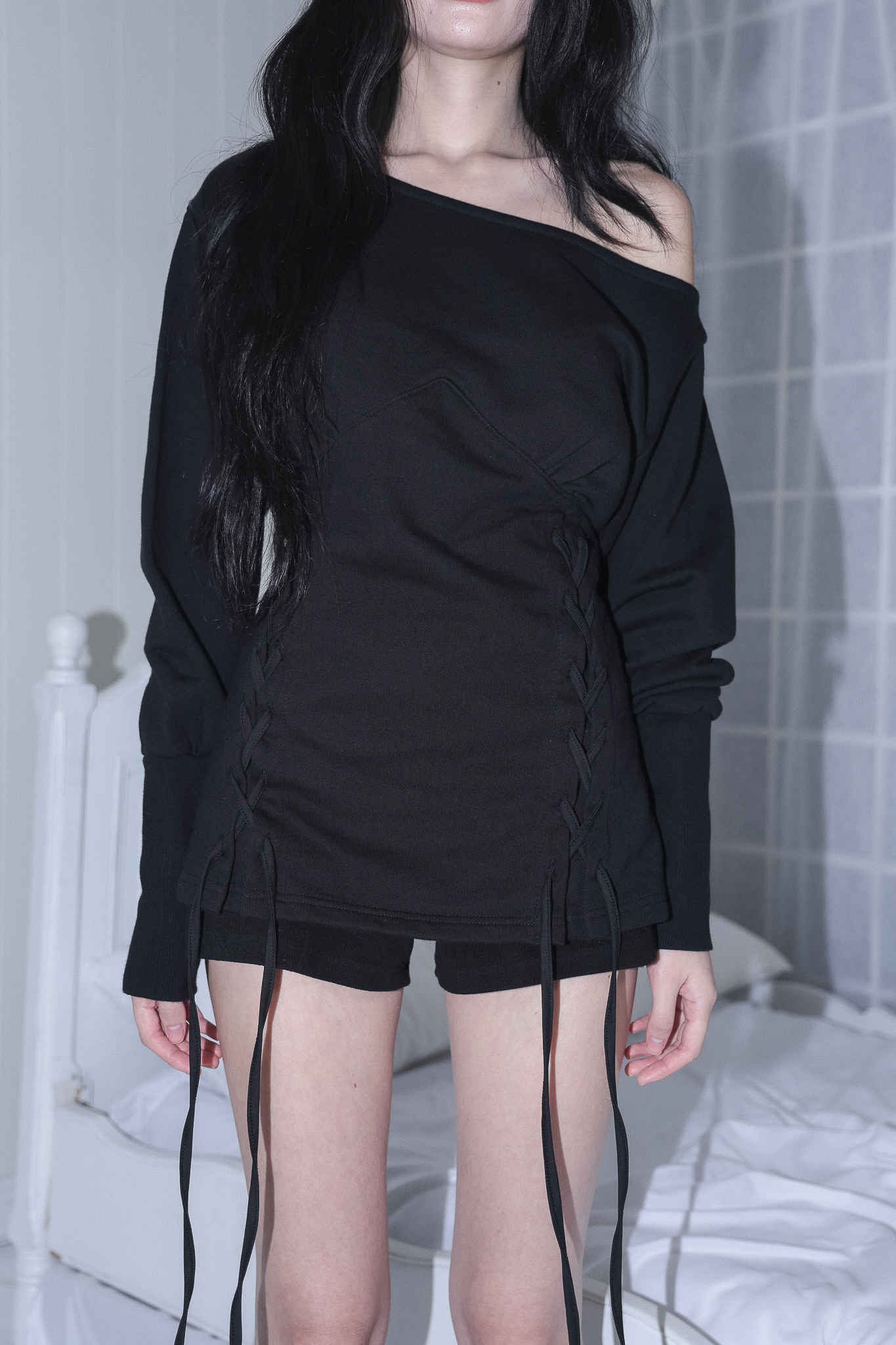 - 뒷판 코르셋 안쪽 리본으로 허리 둘레 조정가능