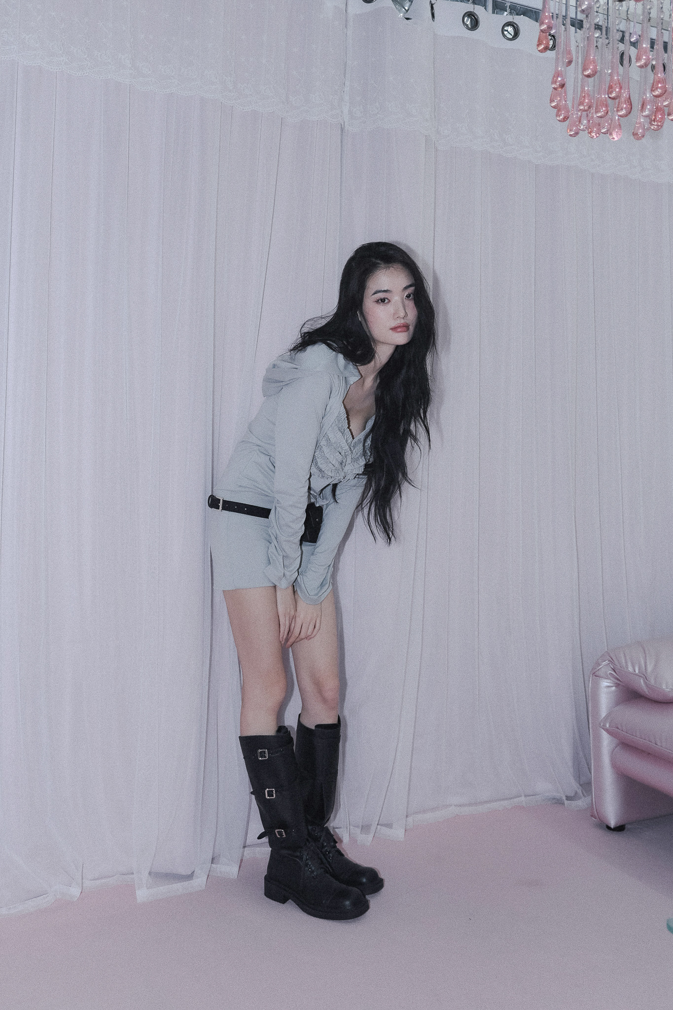 드래이프 후디 드레스 [민트그레이]
