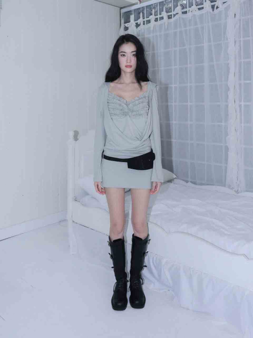 - 앞 가슴 프릴&가슴 중심 핀턱
