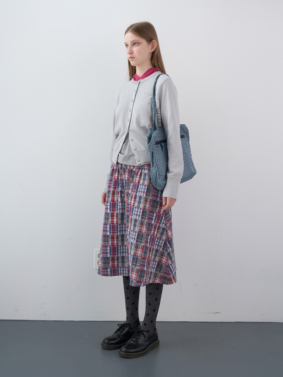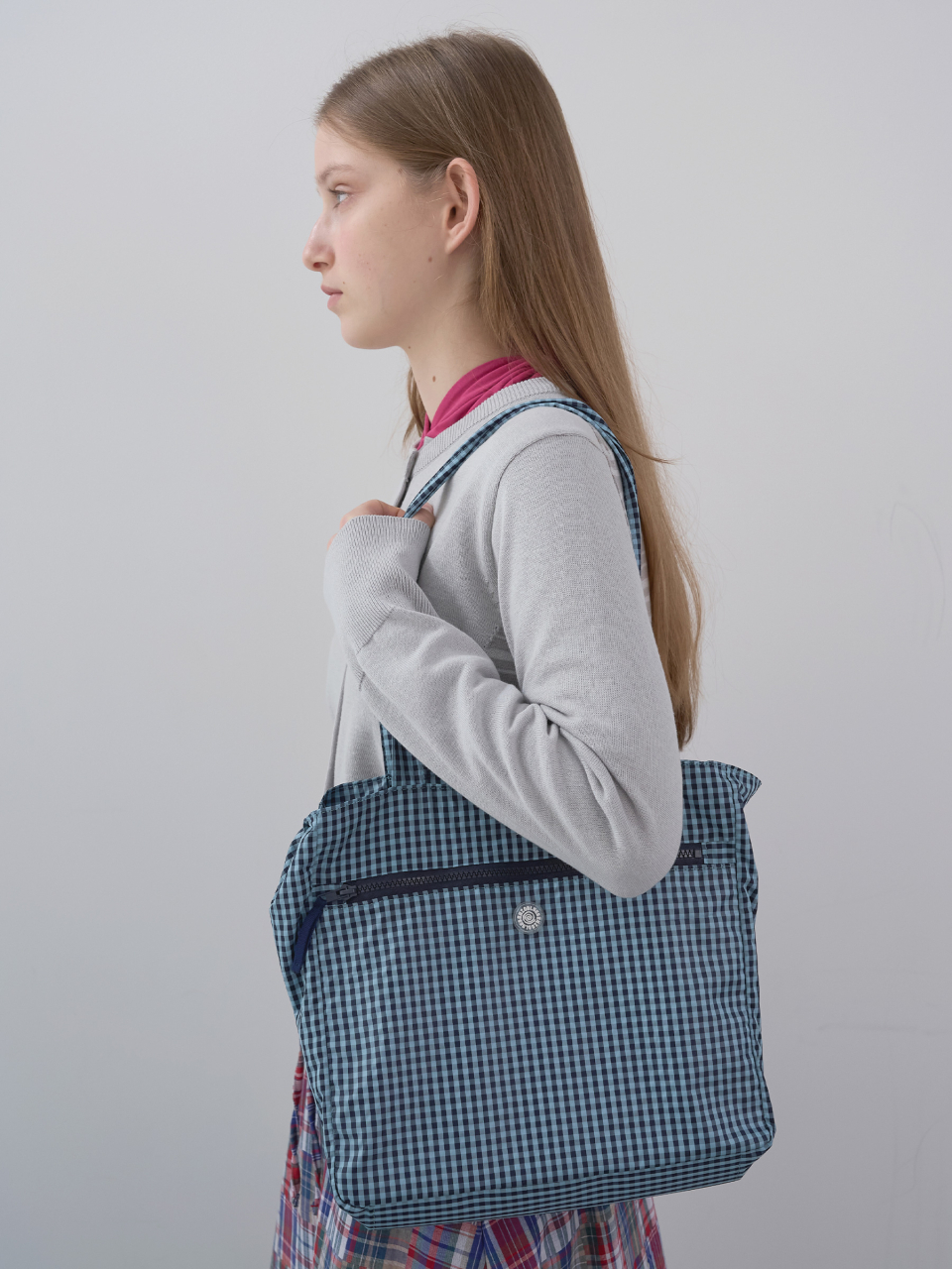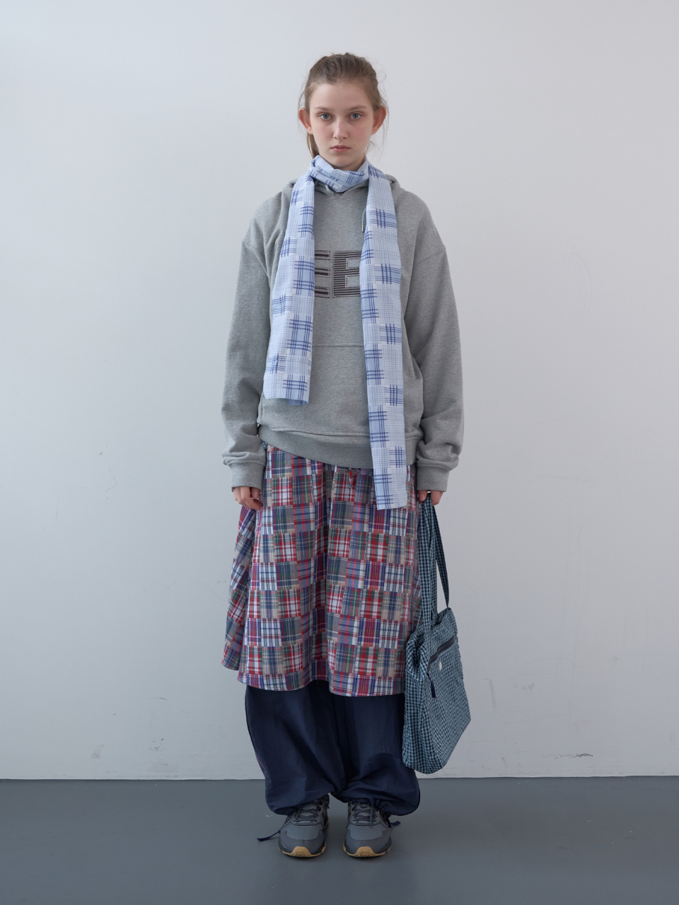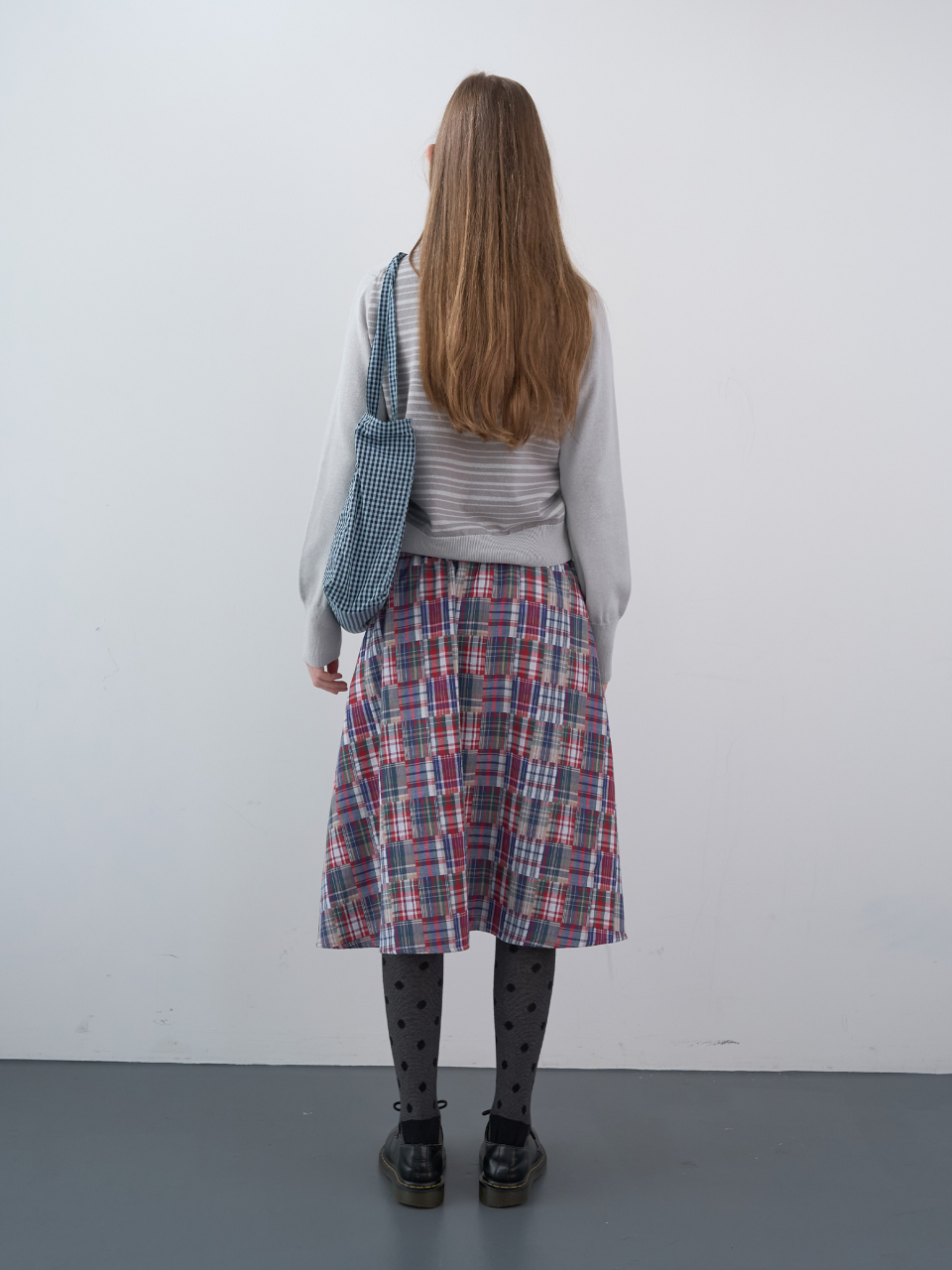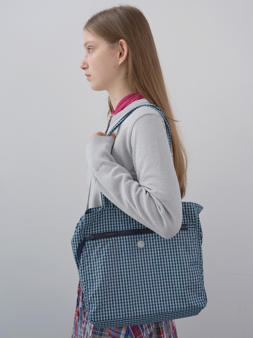 스탬프 패치 체크 숄더백 (Sky)