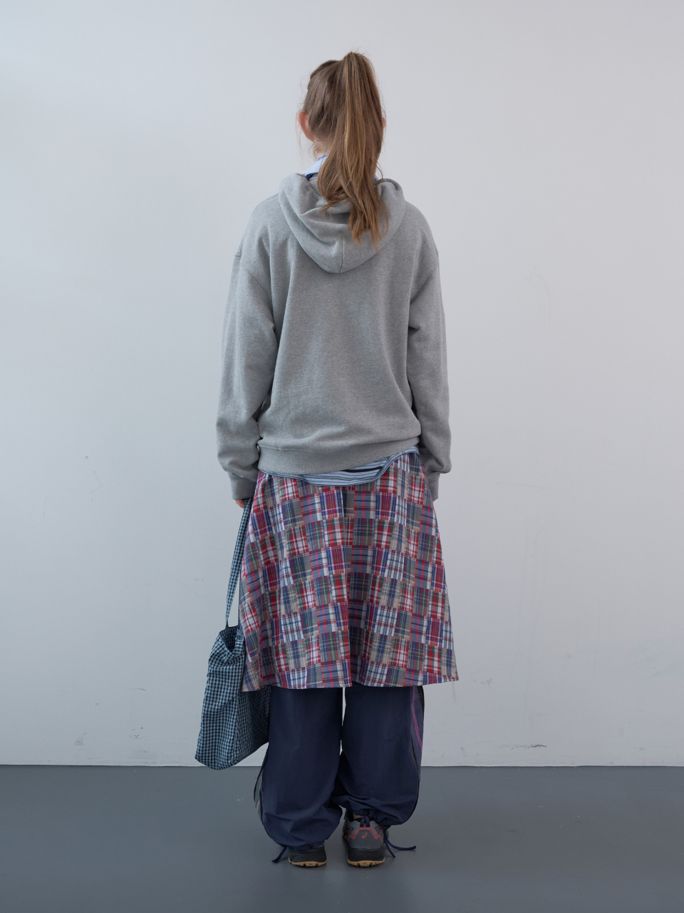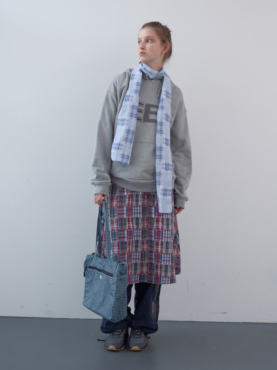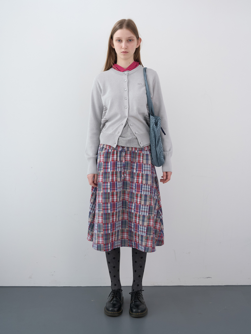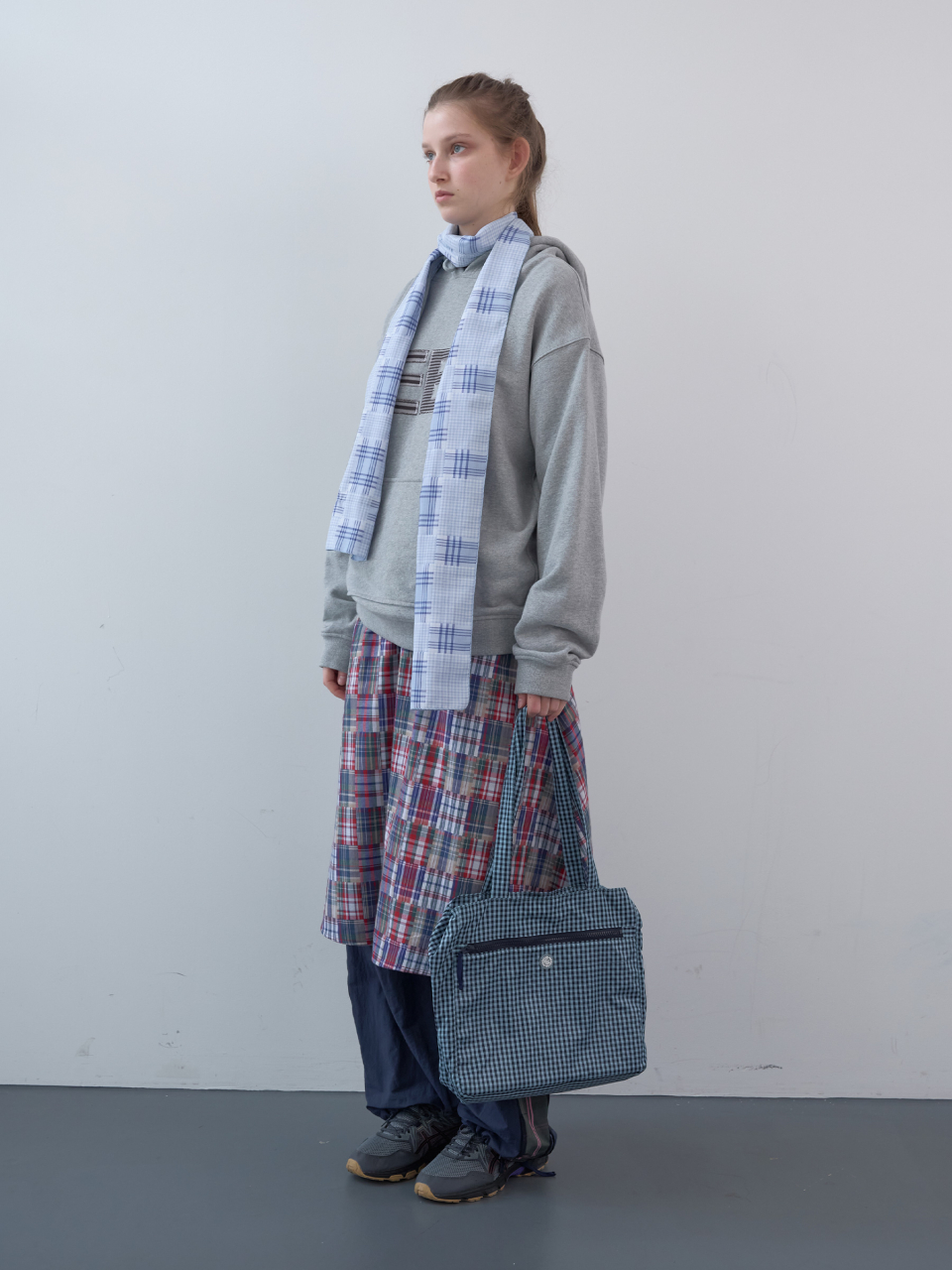 스탬프 패치 체크 숄더백 (Sky)