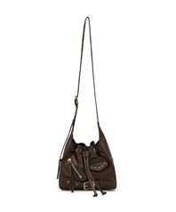 DEINET STUD BELTED MINI BUCKET BAG IN BROWN
