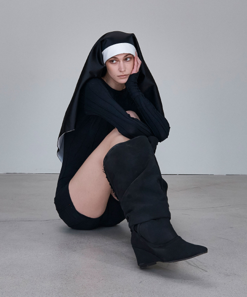 스퀘어 토와 웨지힐 디자인으로 구조적인 라인감과 안정적인 착화감