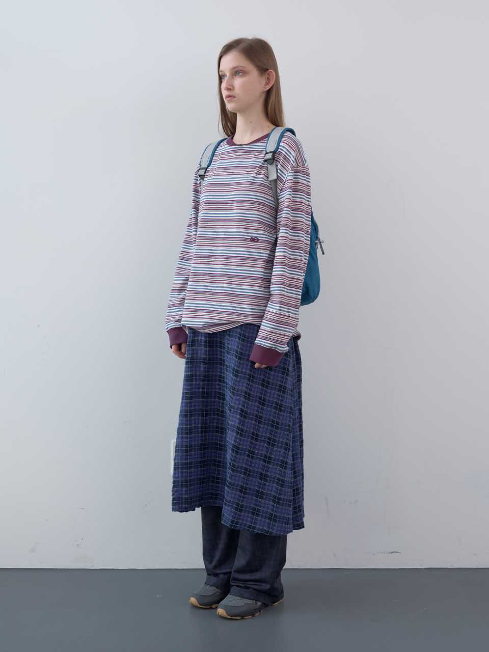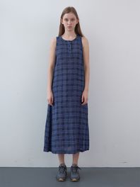 코튼 타탄 체크 롱 드레스 (Blue)