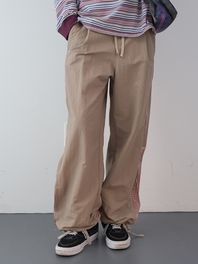 체크 블럭 트랙 팬츠 (Beige)