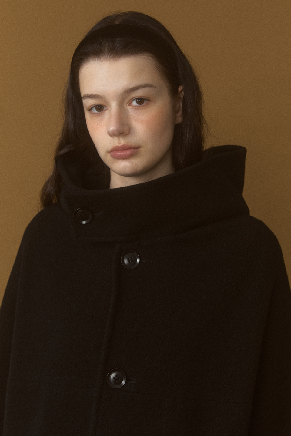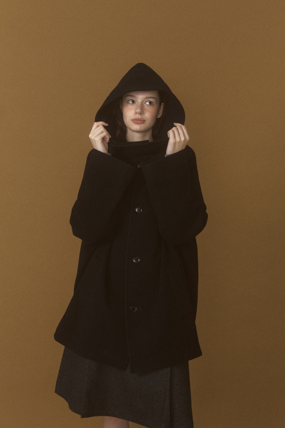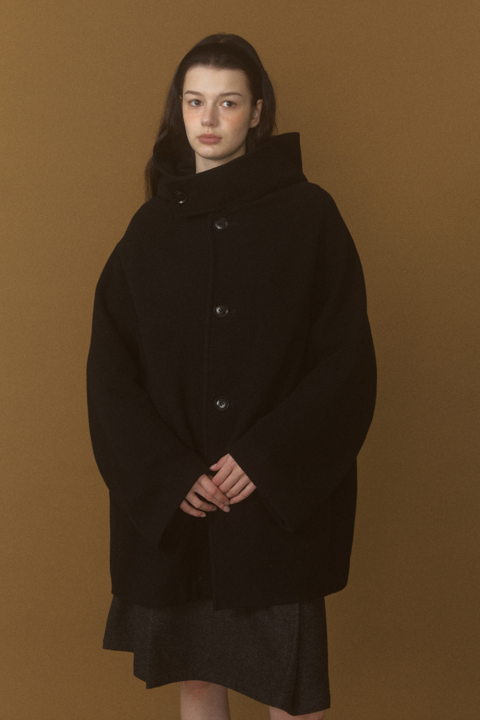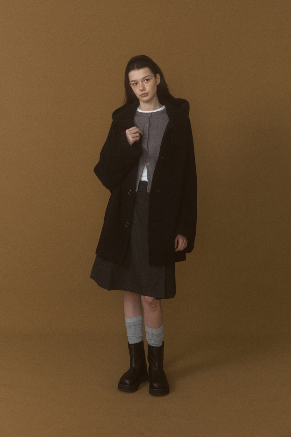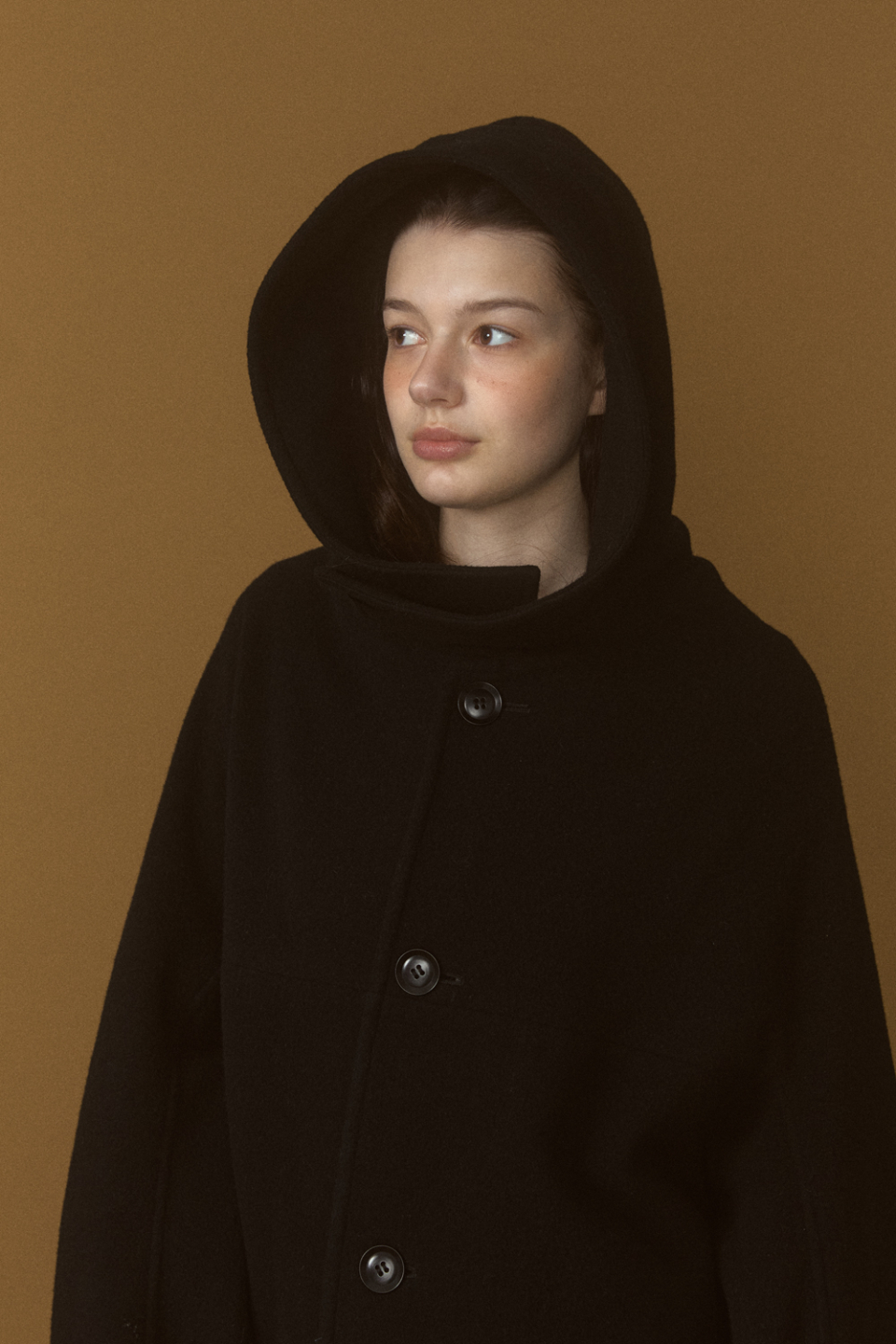 부드럽고 포근한 울 소재로 제작된 후드 코트입니다.