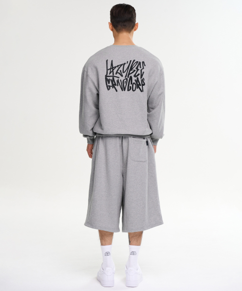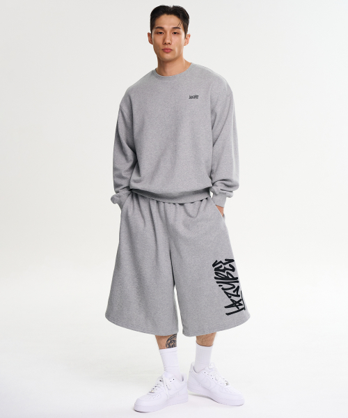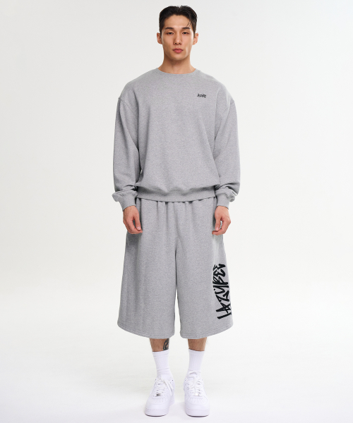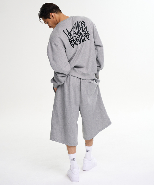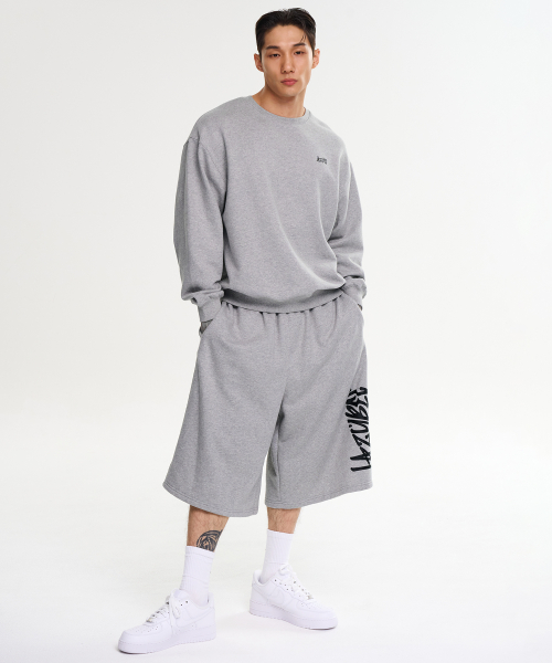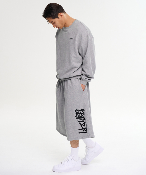 [SET] 그래피티 루즈핏 맨투맨 상의 + 빅 로고 버뮤다 팬츠 세트 M 멜란지그레이