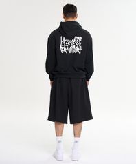 [SET] 그래피티 루즈핏 후드 상의 + 빅 로고 버뮤다 팬츠 짐웨어 세트 M 블랙