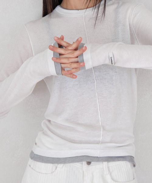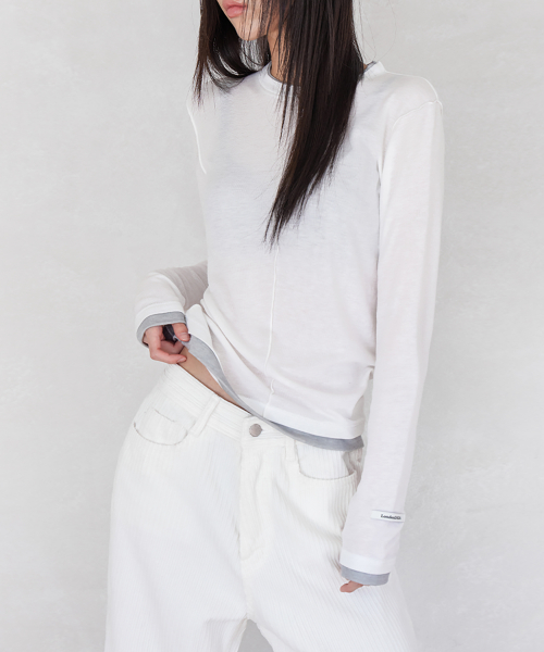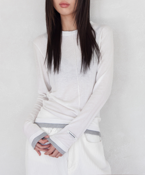 LABEL INCISION LONG SLEEVE T-SHIRT, WHITE