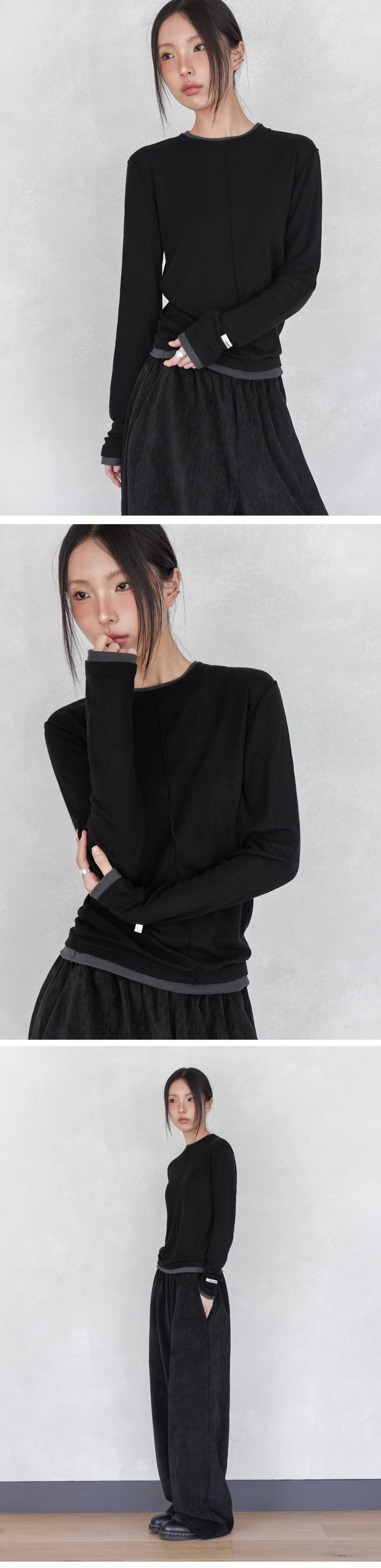 LABEL INCISION LONG SLEEVE T-SHIRT, BLACK