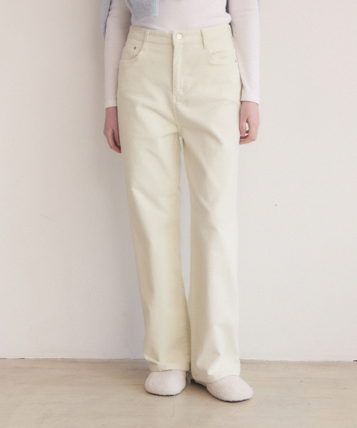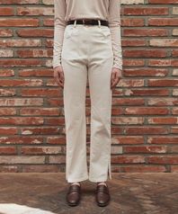 플랫 와이드 슬릿 코튼 팬츠 - 아이보리