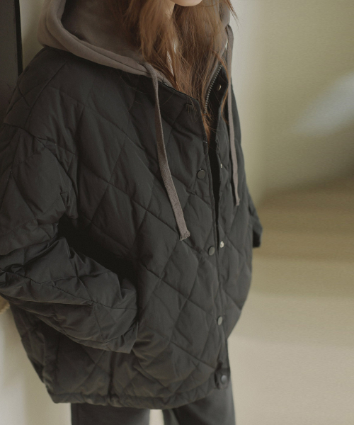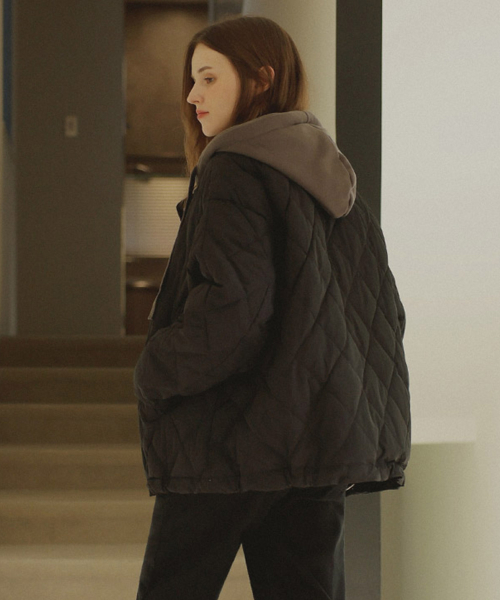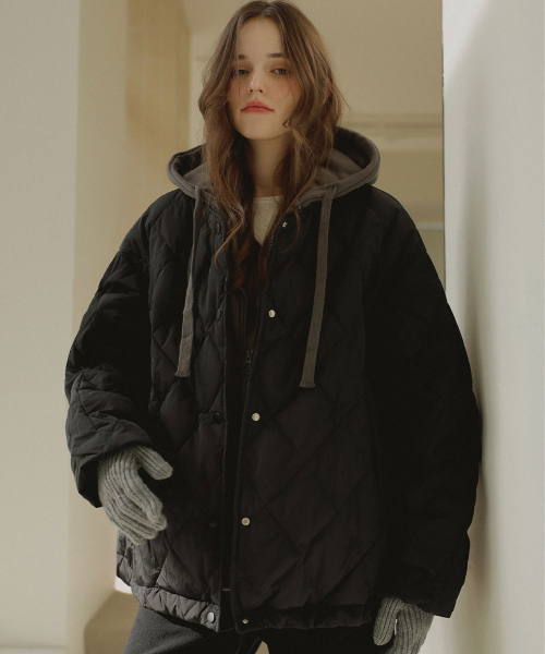 후드 레이어드 누빔 패딩_black