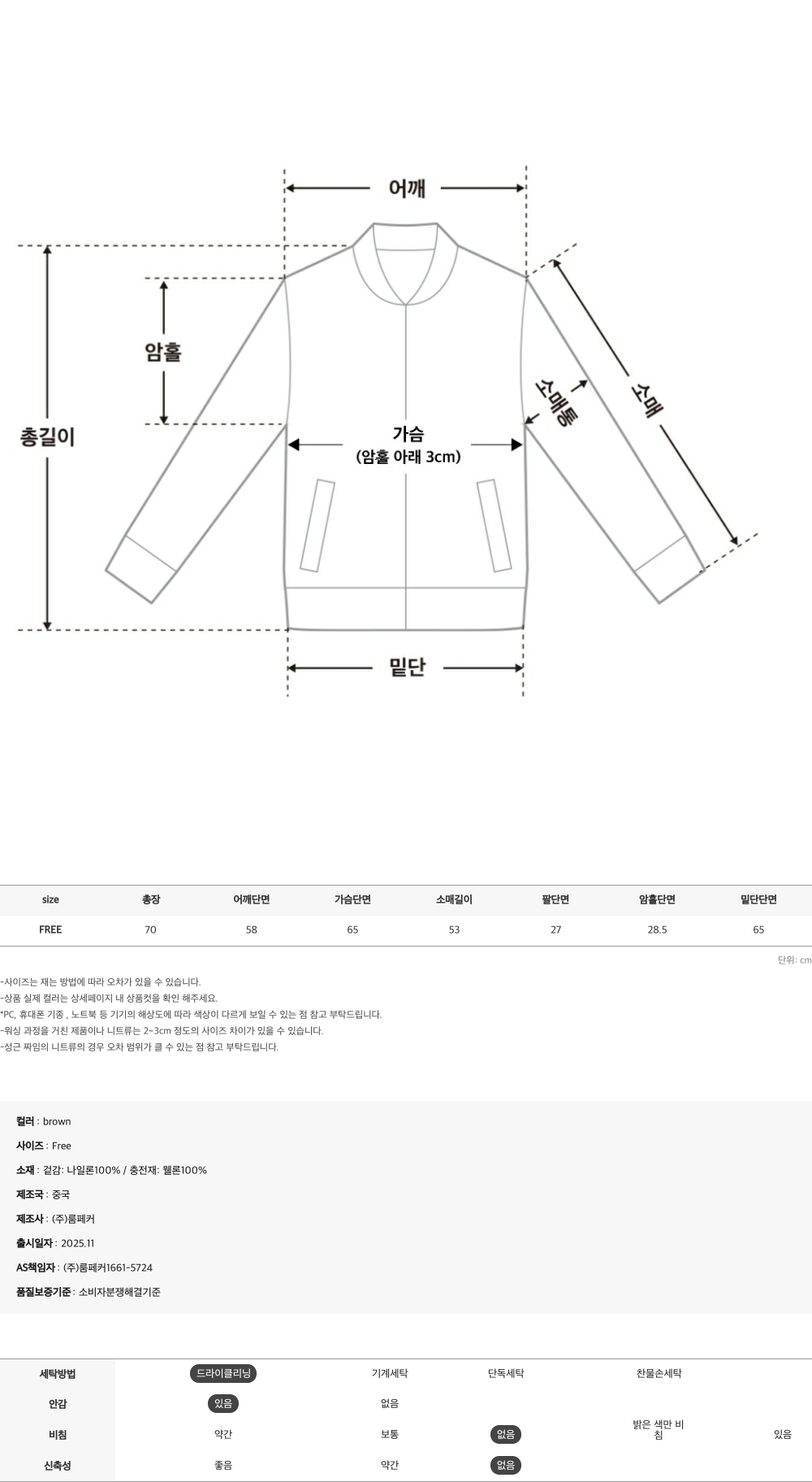 - 겉감:나일론100% / 충전재:웰론100%