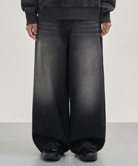 워시드 와이드 벌룬핏 데님 팬츠 (WASHED BLACK)