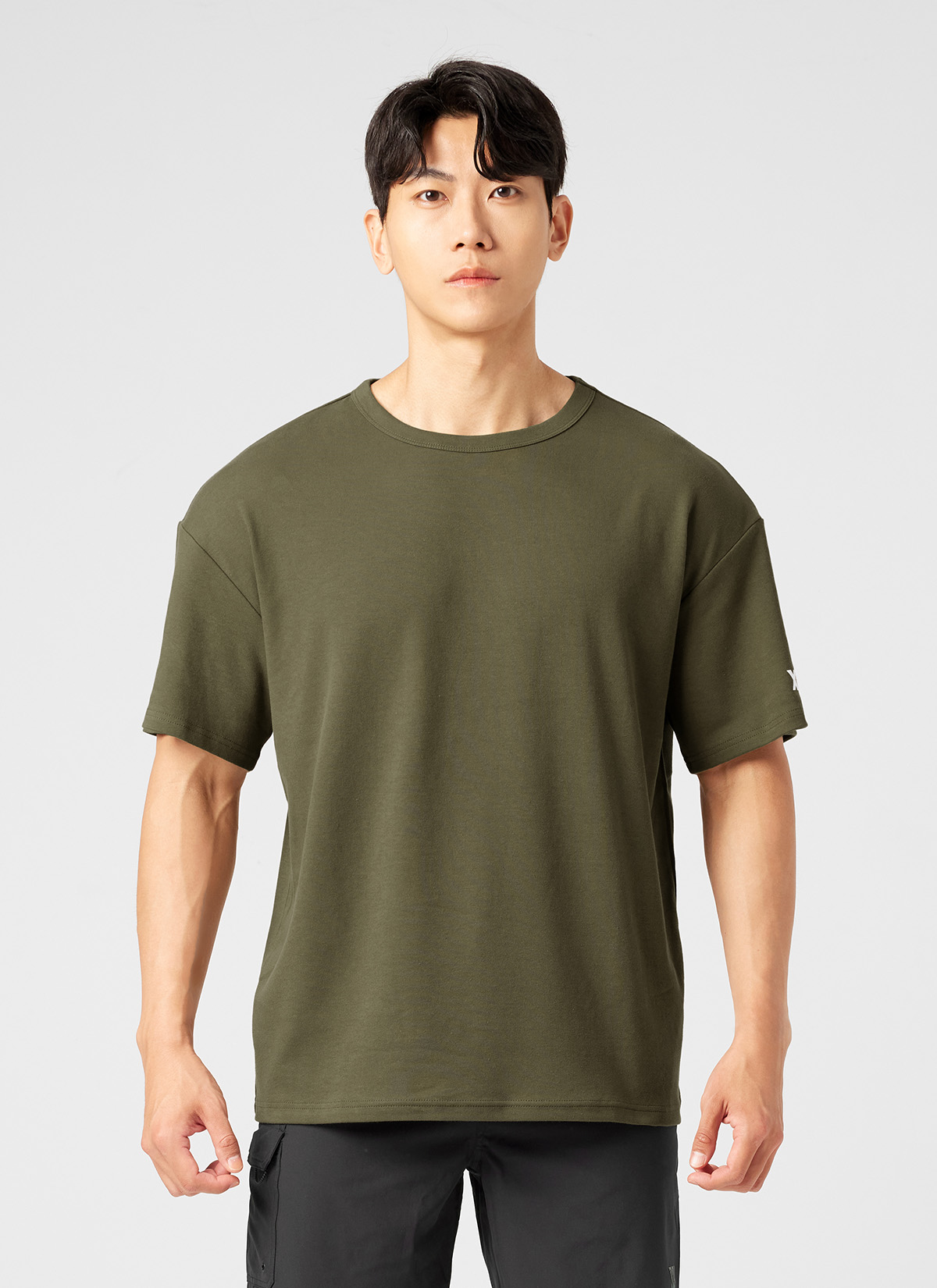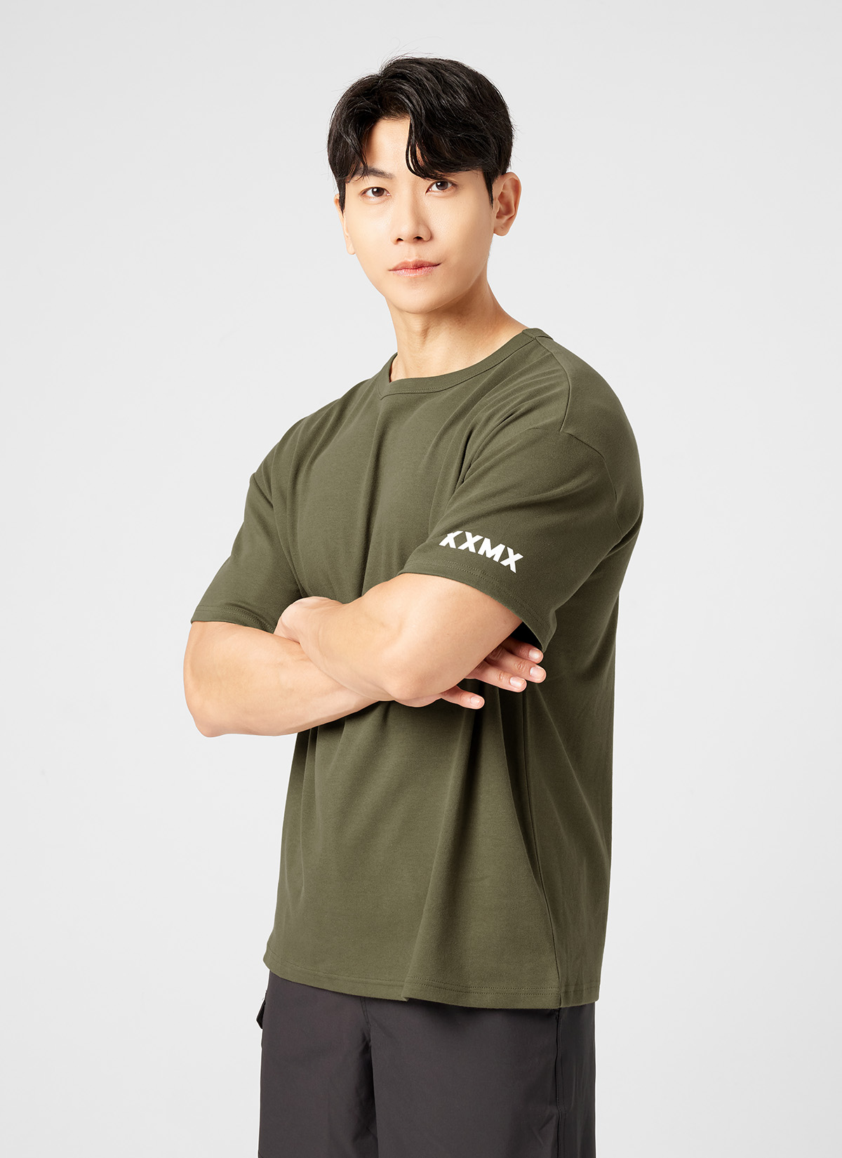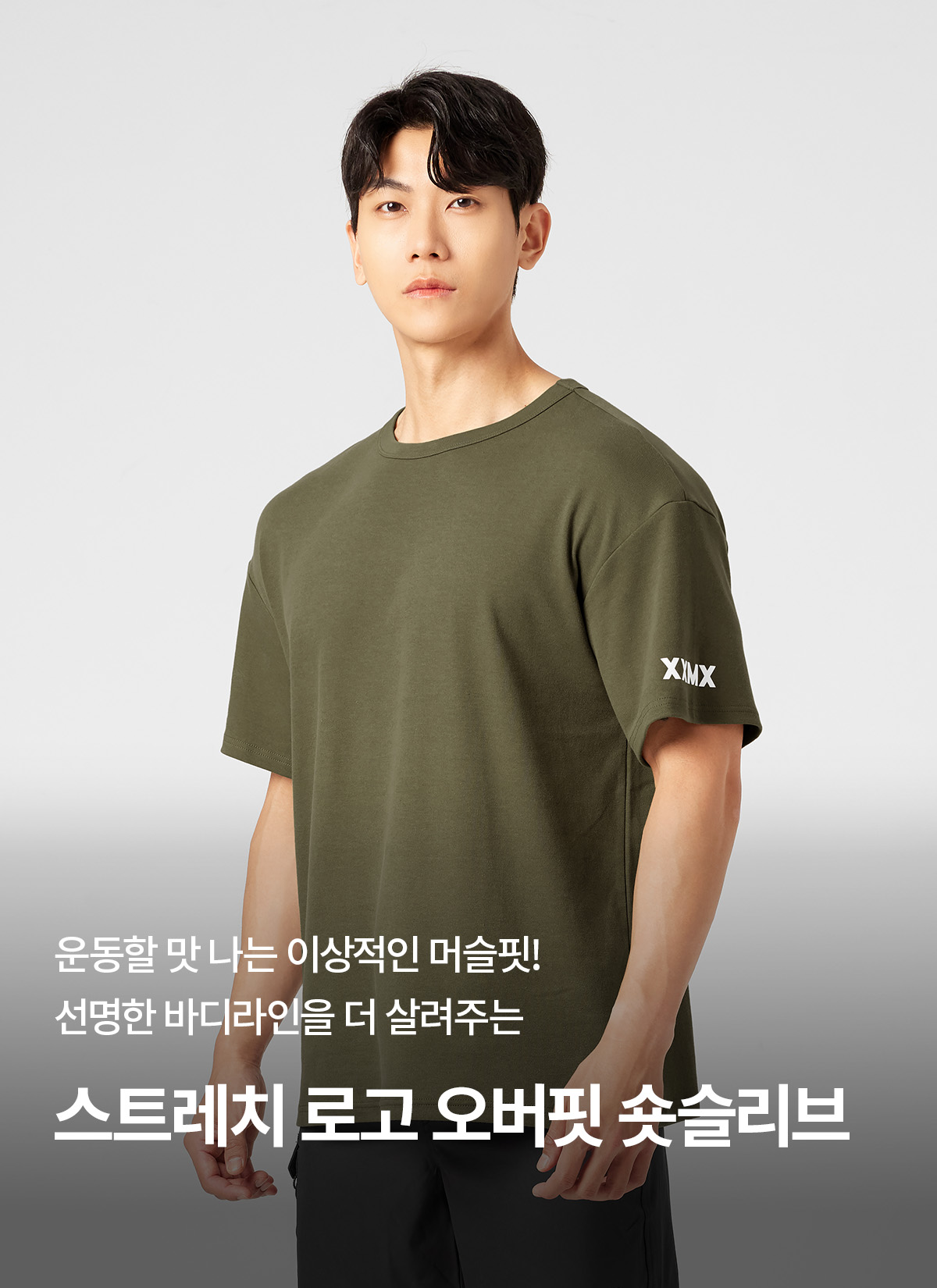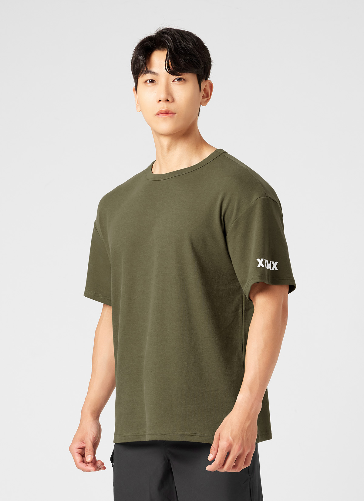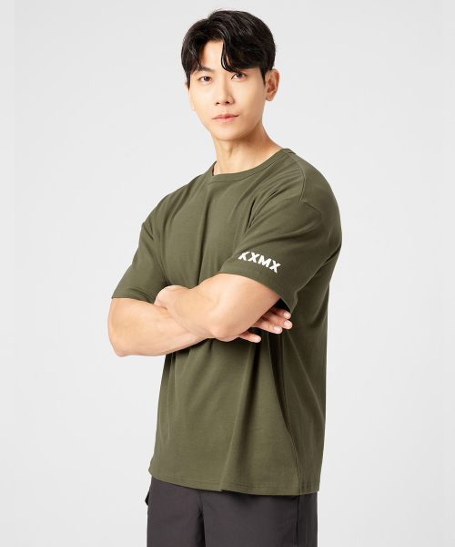 스트레치 로고 오버핏 숏슬리브 카키 XMMST03H3