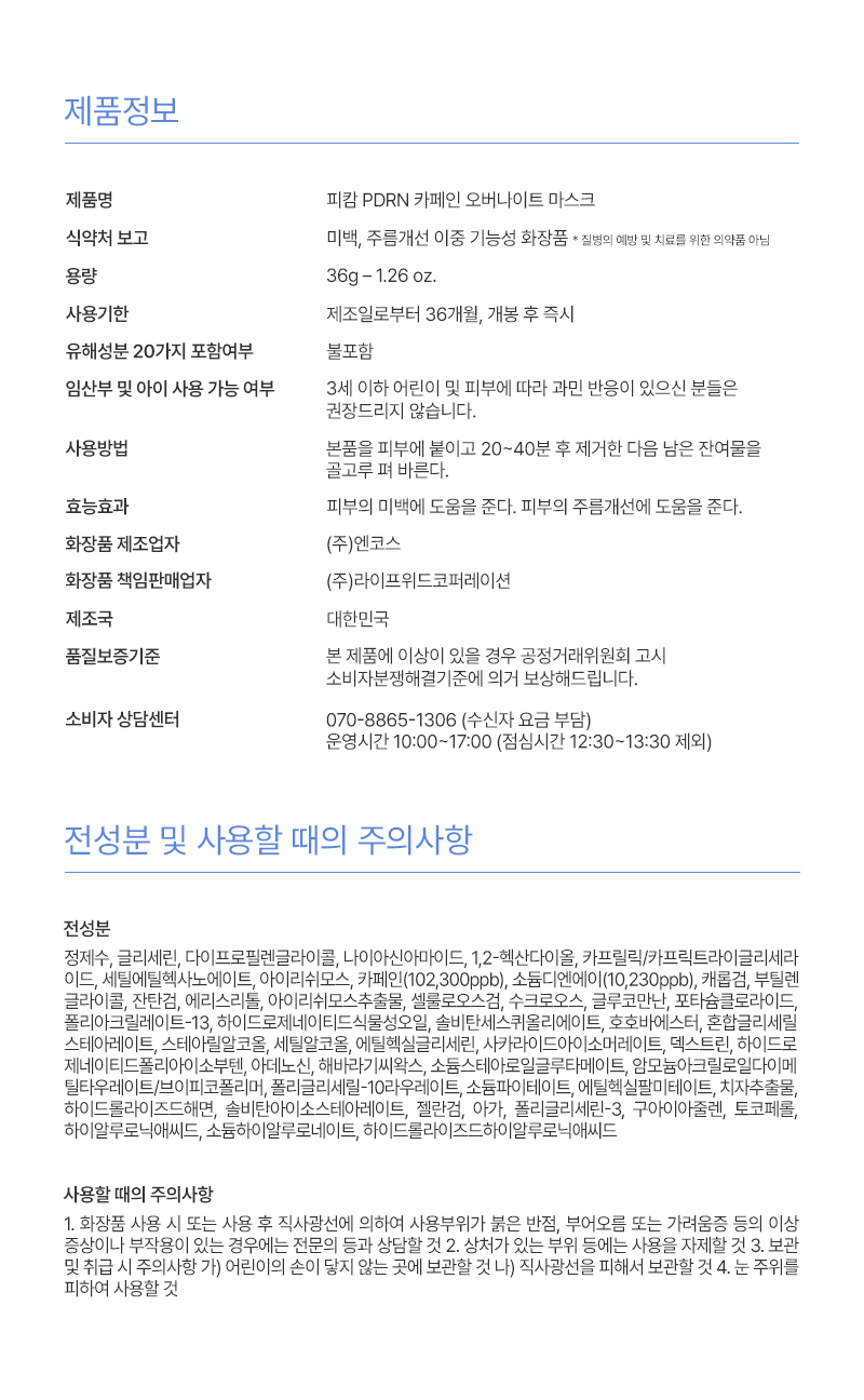 PDRN 카페인 오버나이트 마스크 1BOX (4개입)