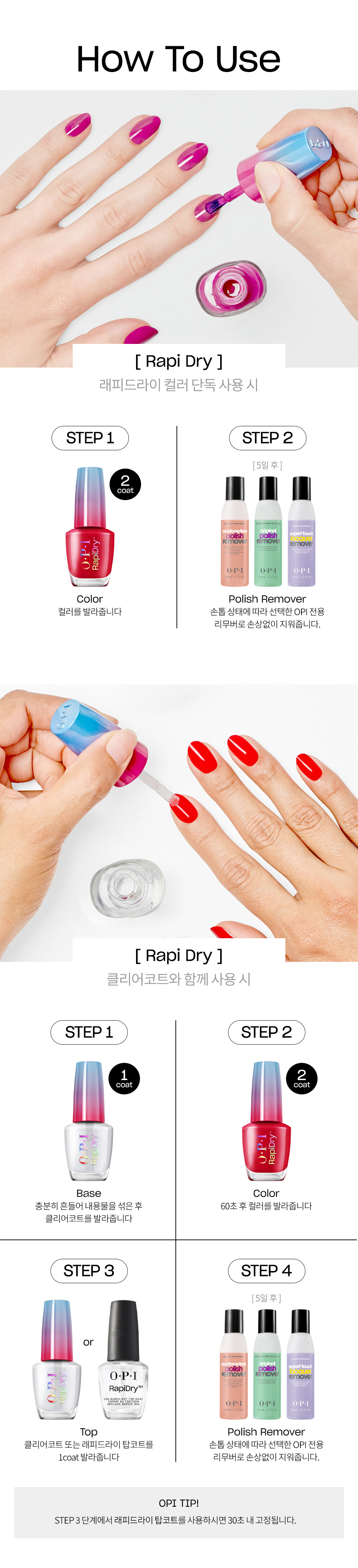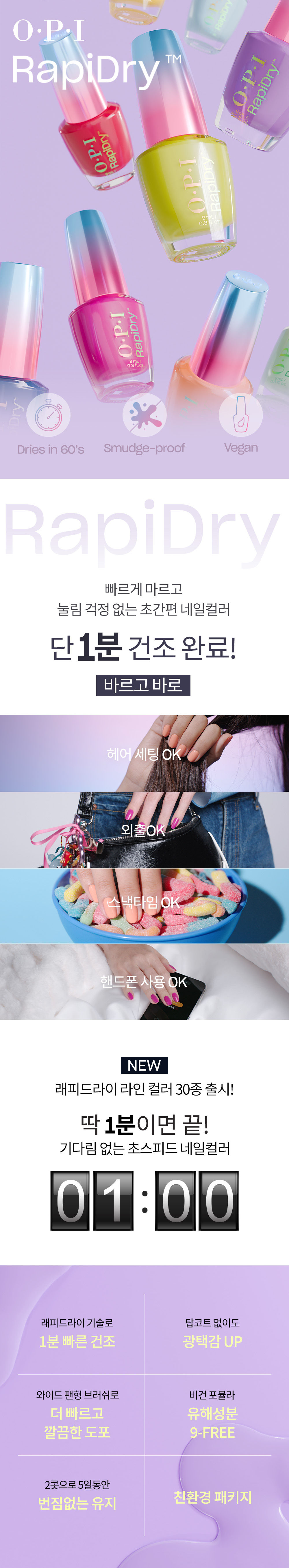 오피아이(O.P.I)는 손 끝에서 본연의 아름다움이 완성 되도록, 누구나 스스로에게 어울리는 컬러를 찾을 수 있도록 세상의 모든 컬러를 재현해낼 수 있는 단 하나의 브랜드입니다.