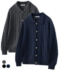 오버핏 케이블 카라 니트 가디건 3Color