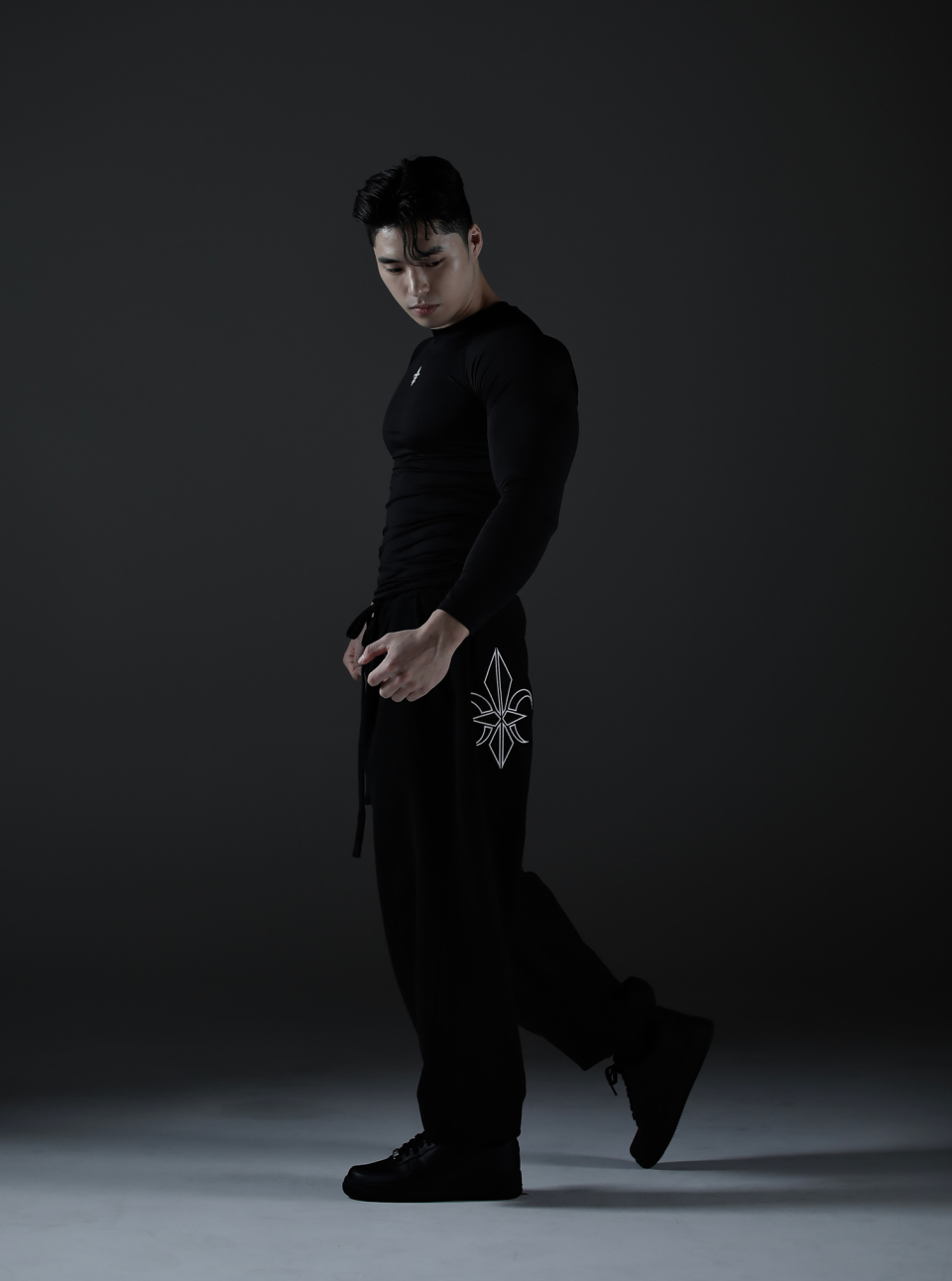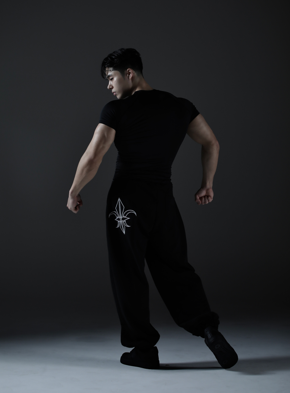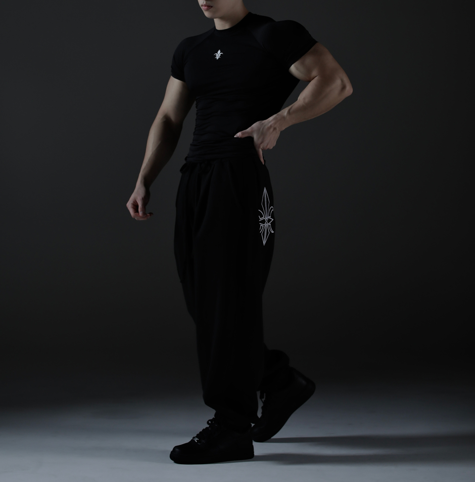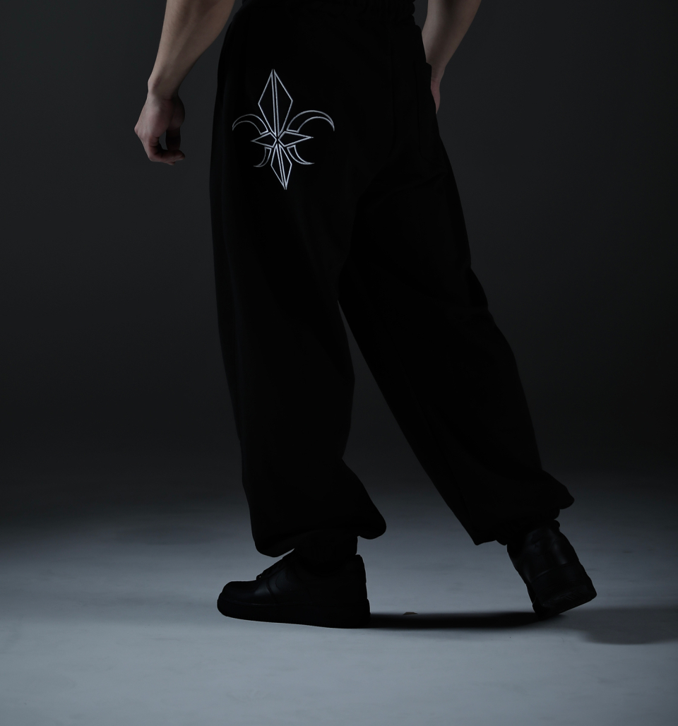 카미드 와이드 스웨트 로고 팬츠 [블랙]