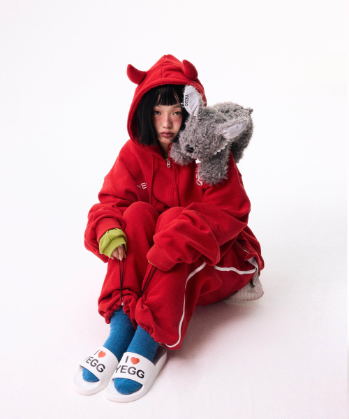 ( 후드모자의 뿔 디테일은 수작업으로 모양이 일정하지 않을 수 있습니다. 이는 교환/반품 사유가 되지 않습니다. 본 제품은 짙은 컬러 원단 특성상 초기 세탁 시 물빠짐 및 이염이 발생할 수 있습니다.• 첫 세탁은 반드시 드라이클리닝 또는 단독 세탁을 권장드리며, 타 제품과의 이염에 유의해 주세요. )