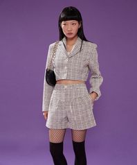 더블 블라우스 자켓(체크 블랙)