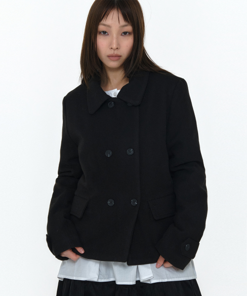 싱글 카라 더블 버튼 미니멀 클래식 크롭 코트 자켓 _2COLOR