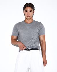 핀 스트라이프 크롭 머슬핏 반팔티 (그레이)