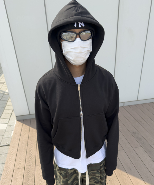 Edition8. 다이아 스웨트 투웨이 크롭 후드집업 (블랙)
