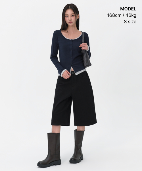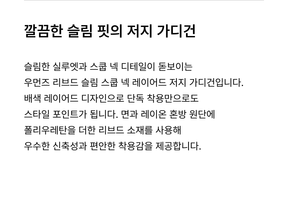 우먼즈 리브드 슬림 스쿱 넥 레이어드 저지 가디건 [블랙]