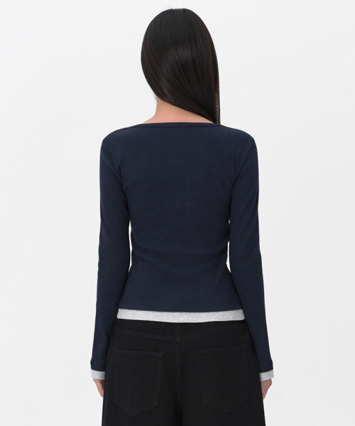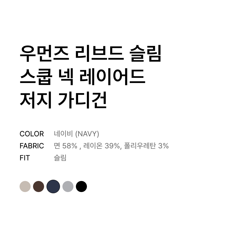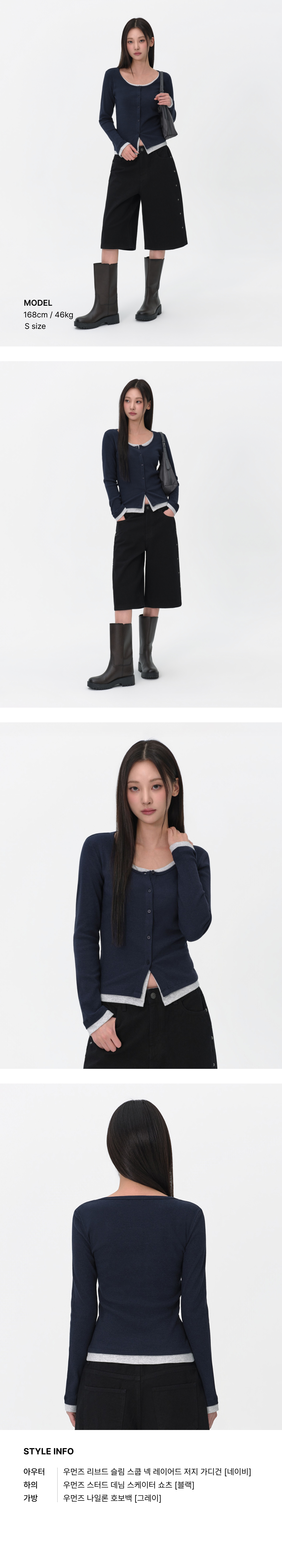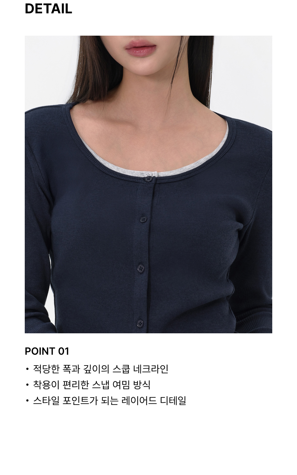 우먼즈 리브드 슬림 스쿱 넥 레이어드 저지 가디건 [네이비]