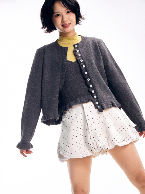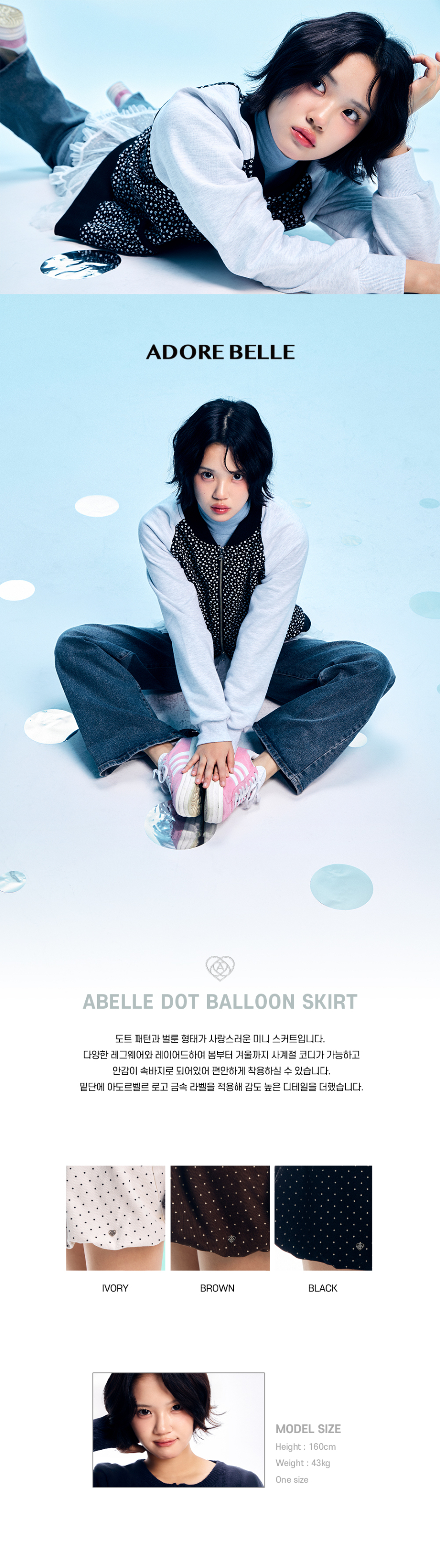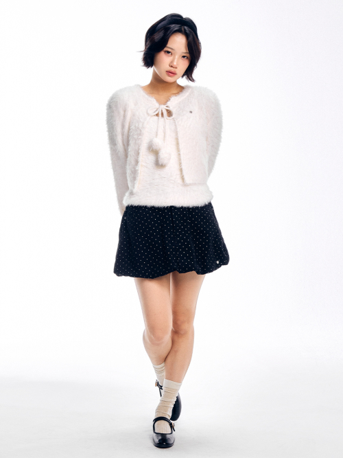 아벨 도트 벌룬 스커트 - 아이보리, 브라운, 블랙