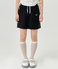 샤이닝 리본 파이핑 스커트 - 블랙