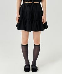 스트링 리본 미니 스커트 - 블랙