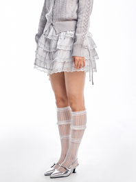 스트랩 캉캉 레이스 스커트 - 화이트, 그레이