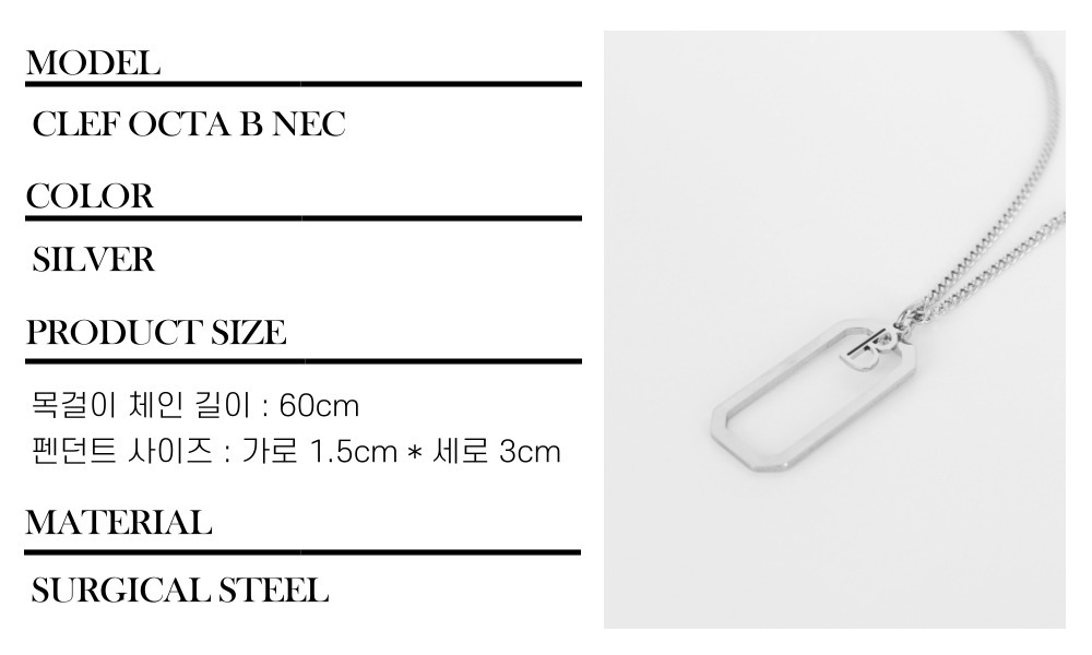 남자 목걸이 심플 펜던트 써지컬 CLEF OCTA B