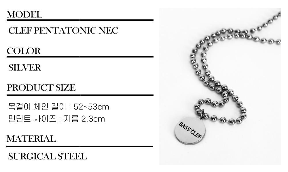 코인 목걸이 써지컬 스틸 펜던트 CLEF PENTATONIC NEC