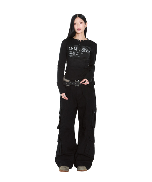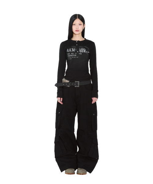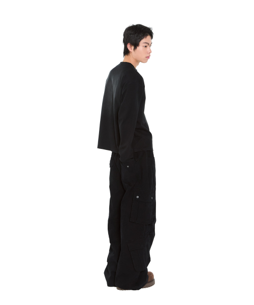 Knee Pin-Tuck Double Pocket Cargo Pants (Black)