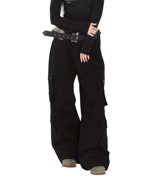 Flare Cargo Pocket Pants (Black)