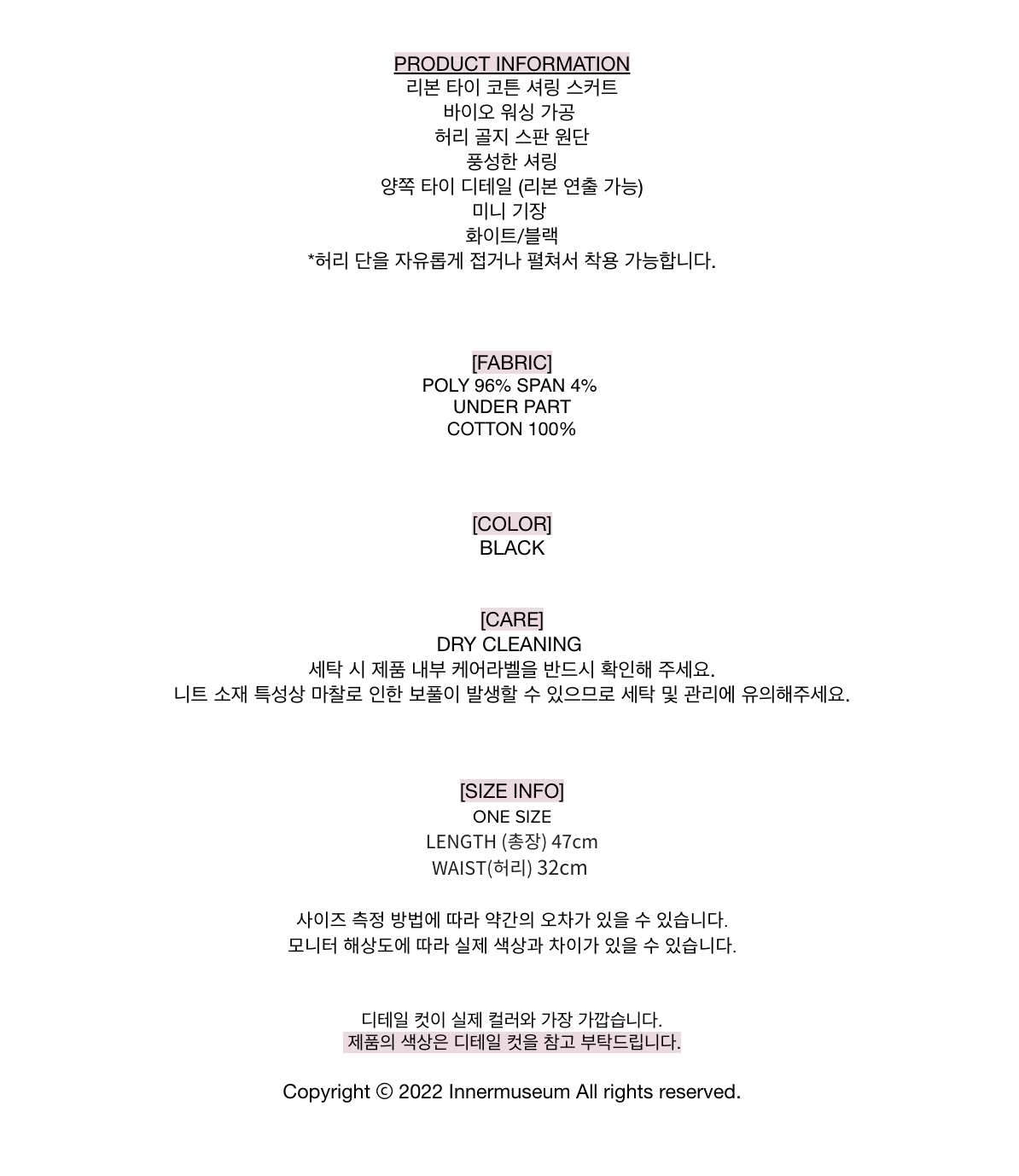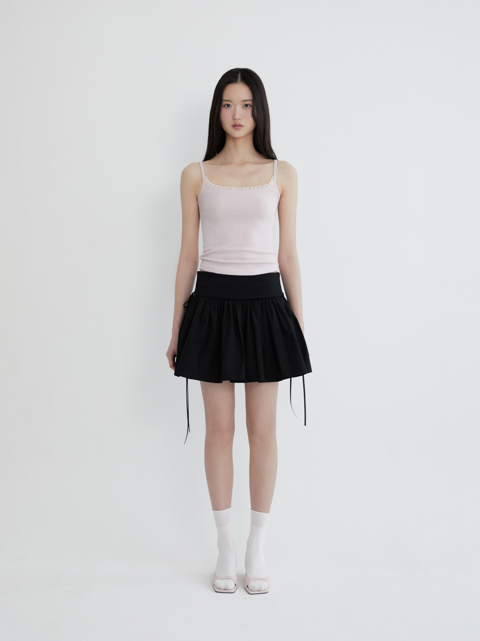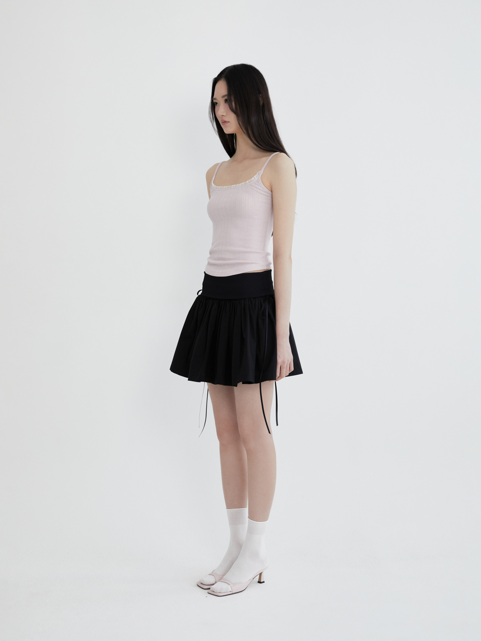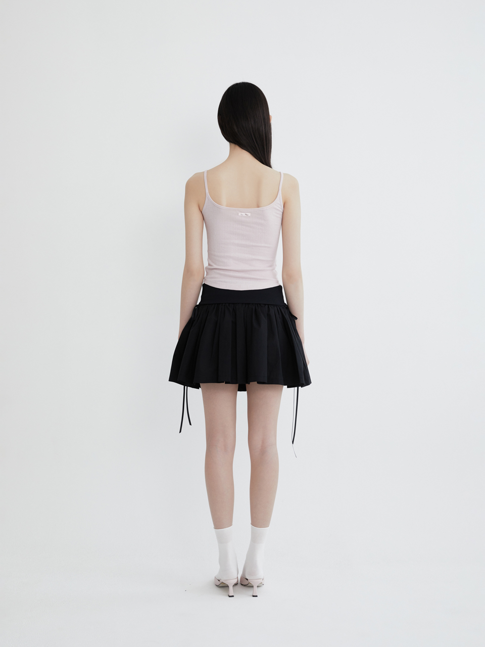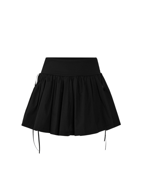 리본 타이 코튼 셔링 스커트 (블랙)