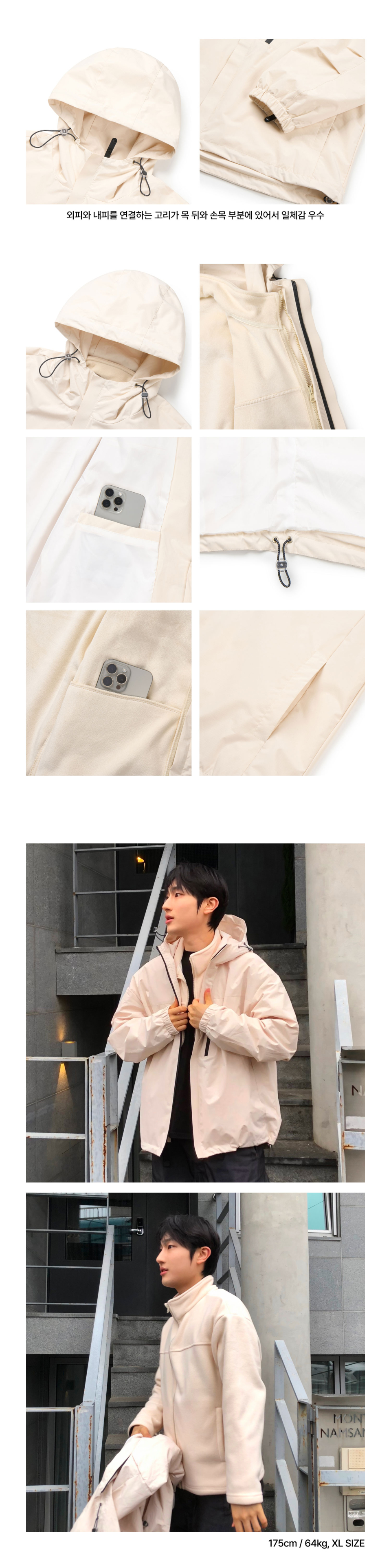 컨버터블 플리스 레이어드 우븐 자켓[크림]