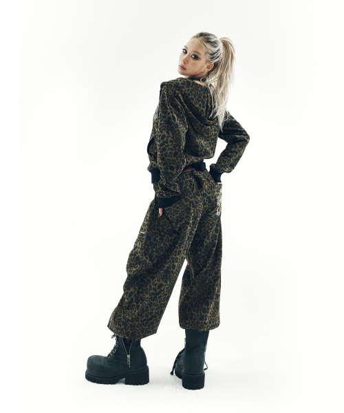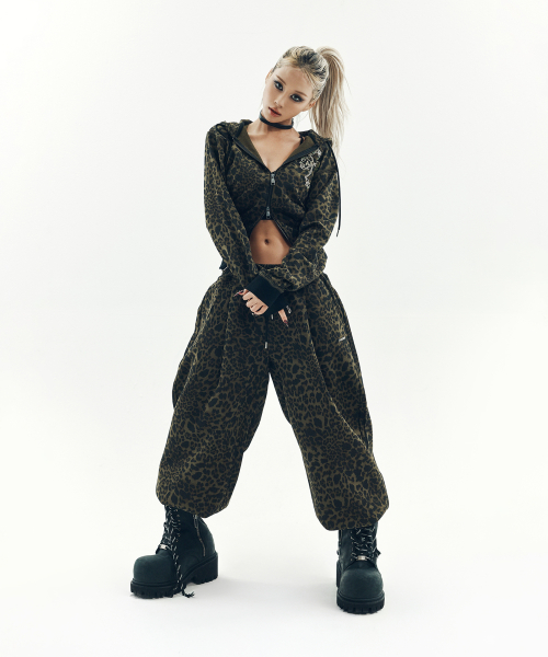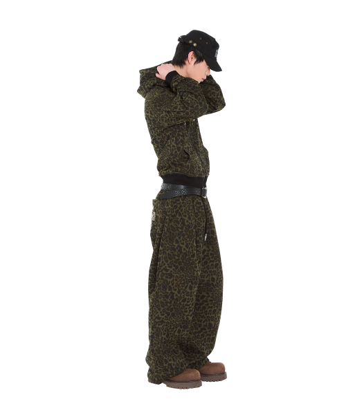 [아캄×다영] AKM CROS2 Leopard Zip-Up Hoodie (Khaki)