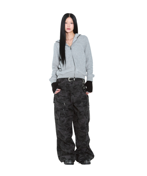Knee Pin-Tuck Zippered Cargo Pants (Black)