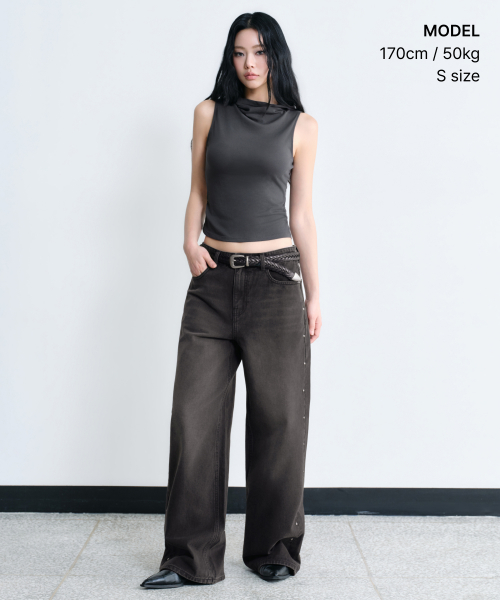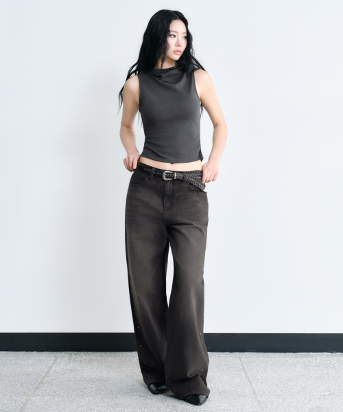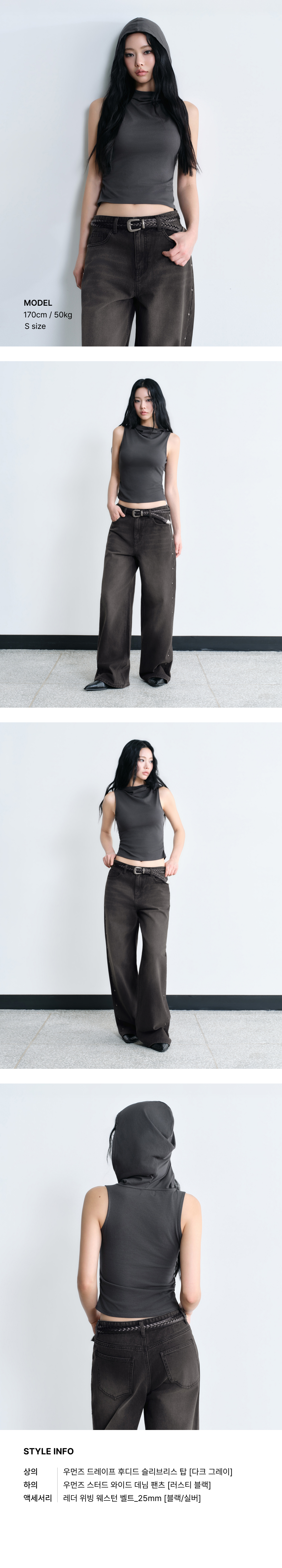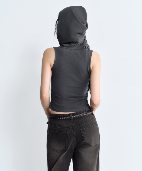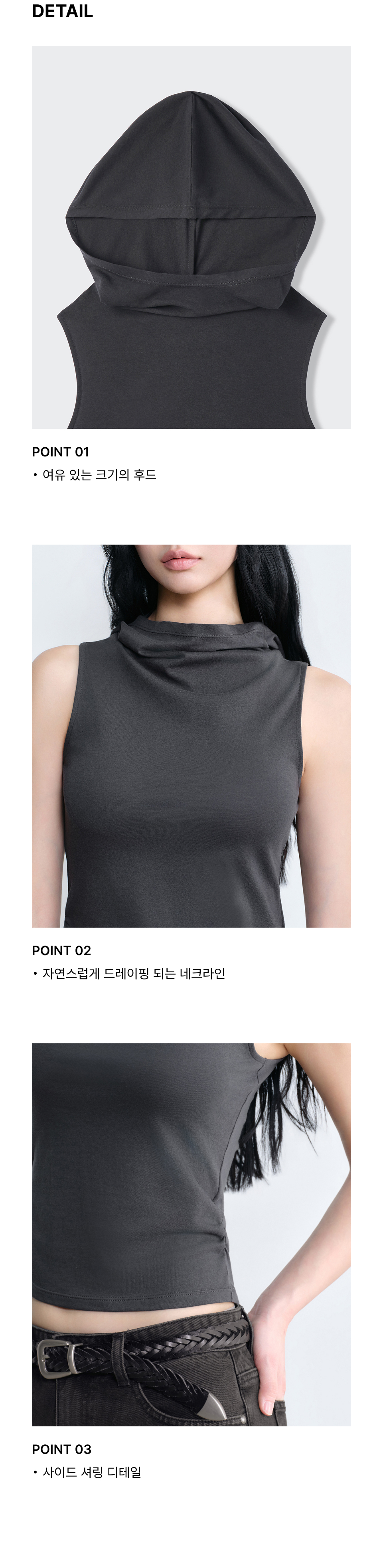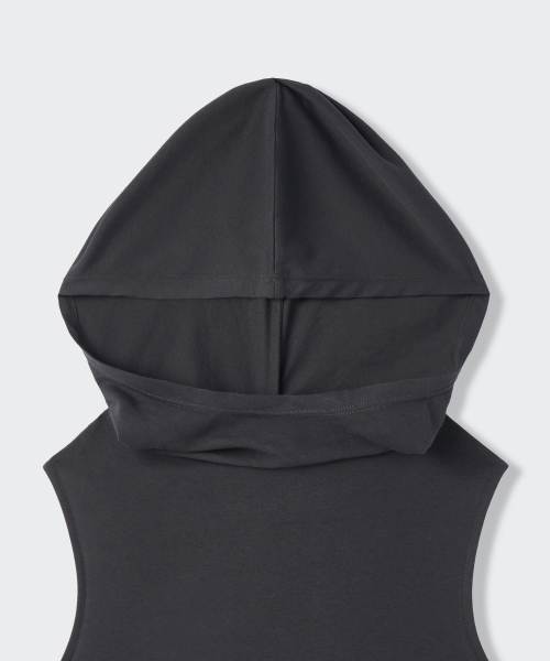우먼즈 드레이프 후디드 슬리브리스 탑 [다크 그레이]