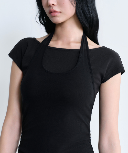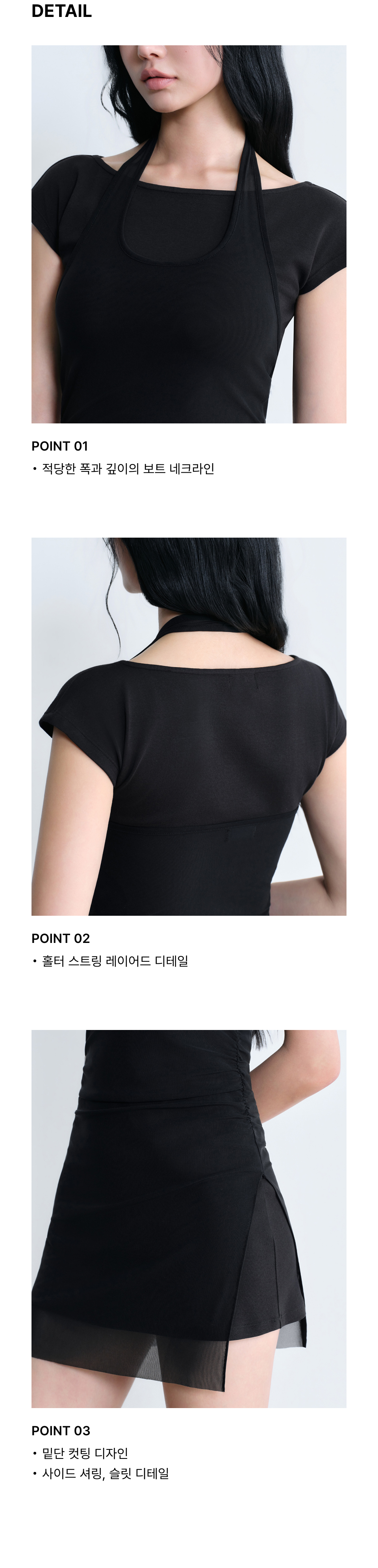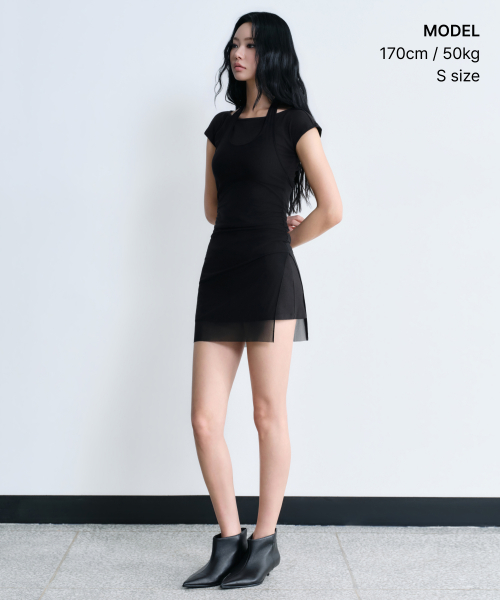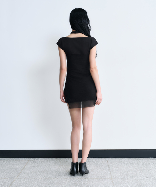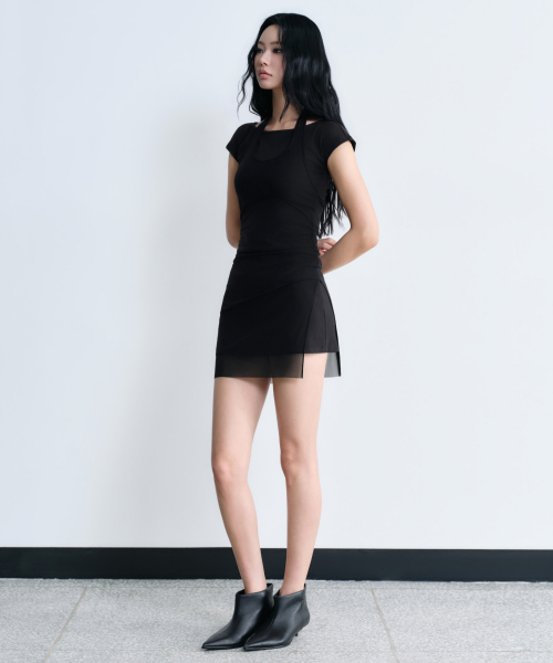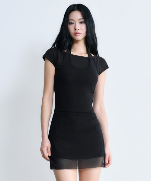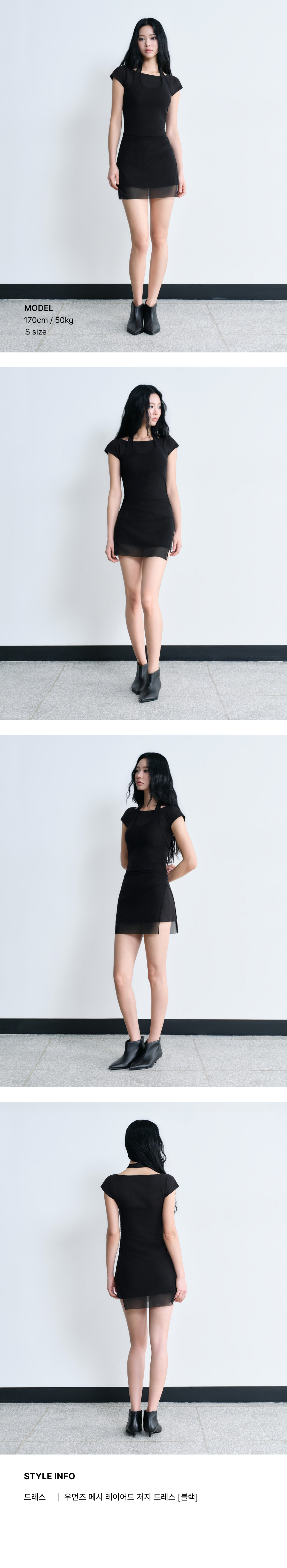 우먼즈 메시 레이어드 저지 드레스 [블랙]