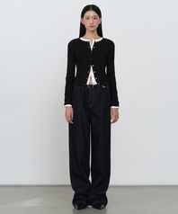 우먼즈 리브드 슬림 라운드 넥 저지 가디건 [블랙]