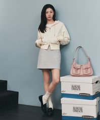 [고윤정 착장] W VINTAGE CLASSIC LOGO SWEAT MINI SKIRT heather gray