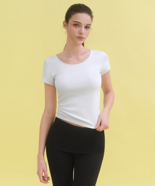 우먼즈 슬림 스쿱 넥 7부 티셔츠 [화이트]