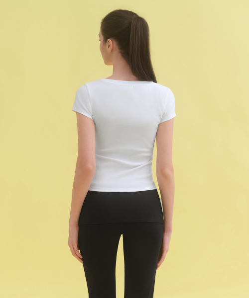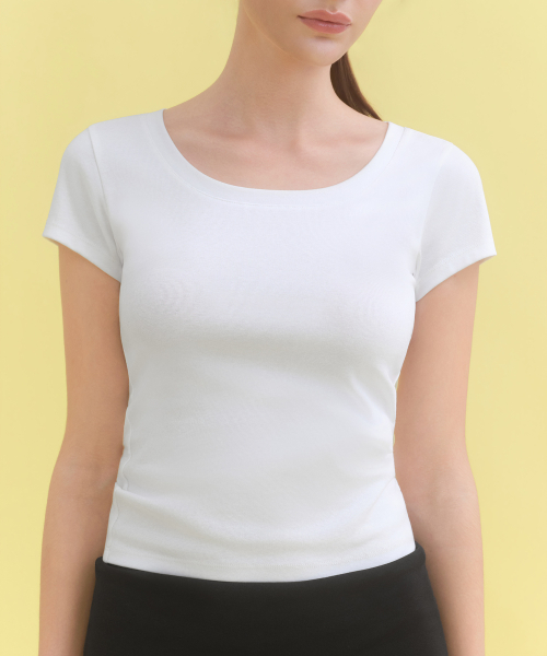 우먼즈 슬림 스쿱 넥 캡 슬리브 티셔츠 [화이트]